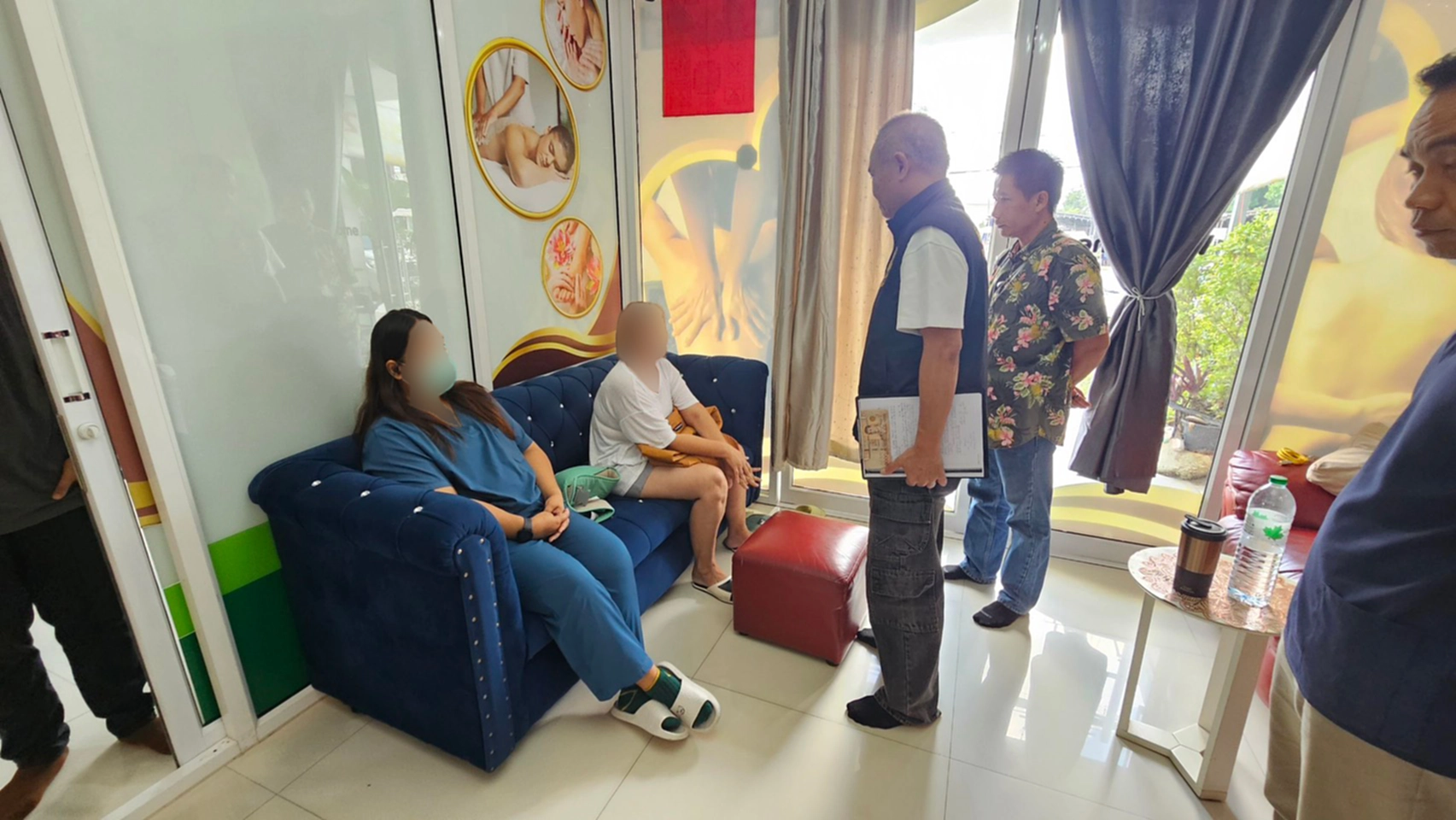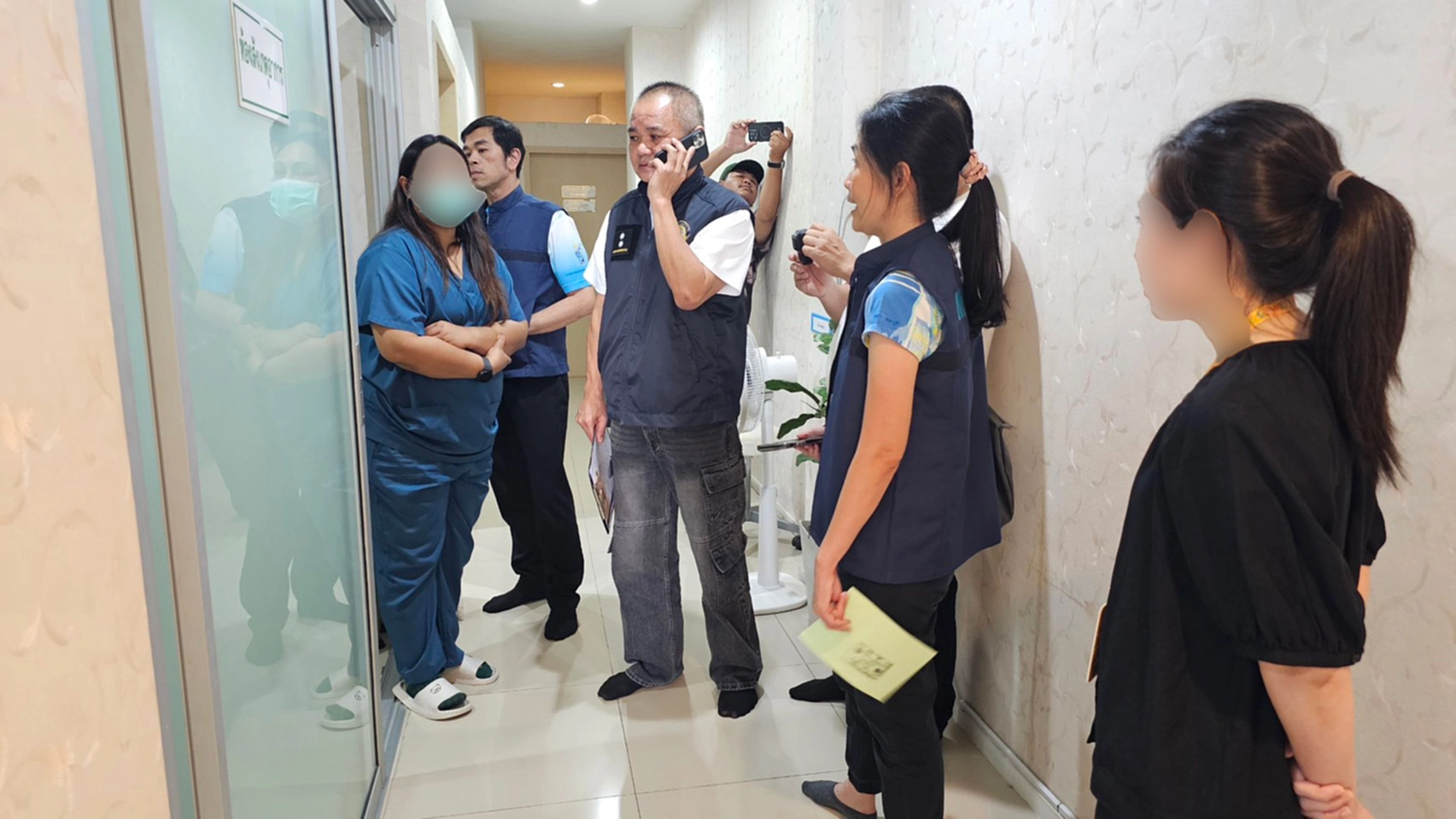 ขณะเดียวกันเจ้าหน้าที่ได้ทำการตรวจสอบบุคลากรที่ให้การรักษาผู้ป่วย โดยพบว่าผู้ที่ให้รักการรักษา เป็นหญิง อายุ 44 ปี แต่เมื่อขอตรวจสอบใบอนุญาตประกอบวิชาชีพหมอ เจ้าตัวก็ไม่สามารถนำมาแสดงกับเจ้าหน้าที่ได้ จึงได้ทำการควบคุมตัว พร้อมทั้งยังควบคุมตัวผู้ช่วยหมอ อายุ 48 ปี ซึ่งทำหน้าที่เป็นผู้ทำประวัติคนไข้ ซึ่งระหว่างที่เจ้าหน้าที่มีการจับกุม ทั้ง 2 คน มีอาการเครียดอย่างเห็นได้ชัด