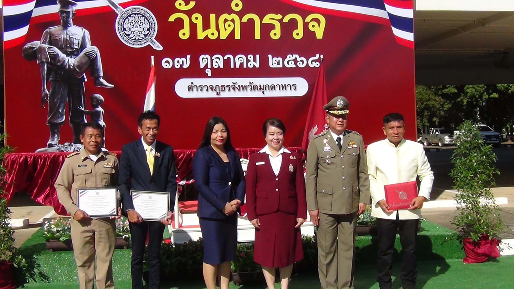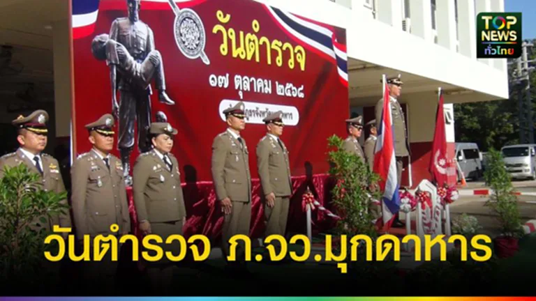 วันที่ 17 ต.ค. 2568 เวลา 08.00 น. ที่ลานหน้ากองบังคับการตำรวจภูธรจังหวัดมุกดาหาร อำเภอเมือง จังหวัดมุกดาหาร พล.ต.ต.ไพโรจน์ ไทยพุทรา ผู้บังการตำรวจภูธรจังหวัดมุกดาหาร เป็นประธานในพิธีวันตำรวจ ประจำปี 2568 โดยมีผู้พิพากษาหัวหน้าศาล อัยการจังหวัด รองผู้บังการตำรวจภูธรจังหวัดมุกดาหาร หัวหน้าส่วนราชการ ข้าราชการตำรวจ แม่บ้านตำรวจ และเจ้าหน้าที่ที่เกี่ยวข้อง ร่วมพิธีฯ