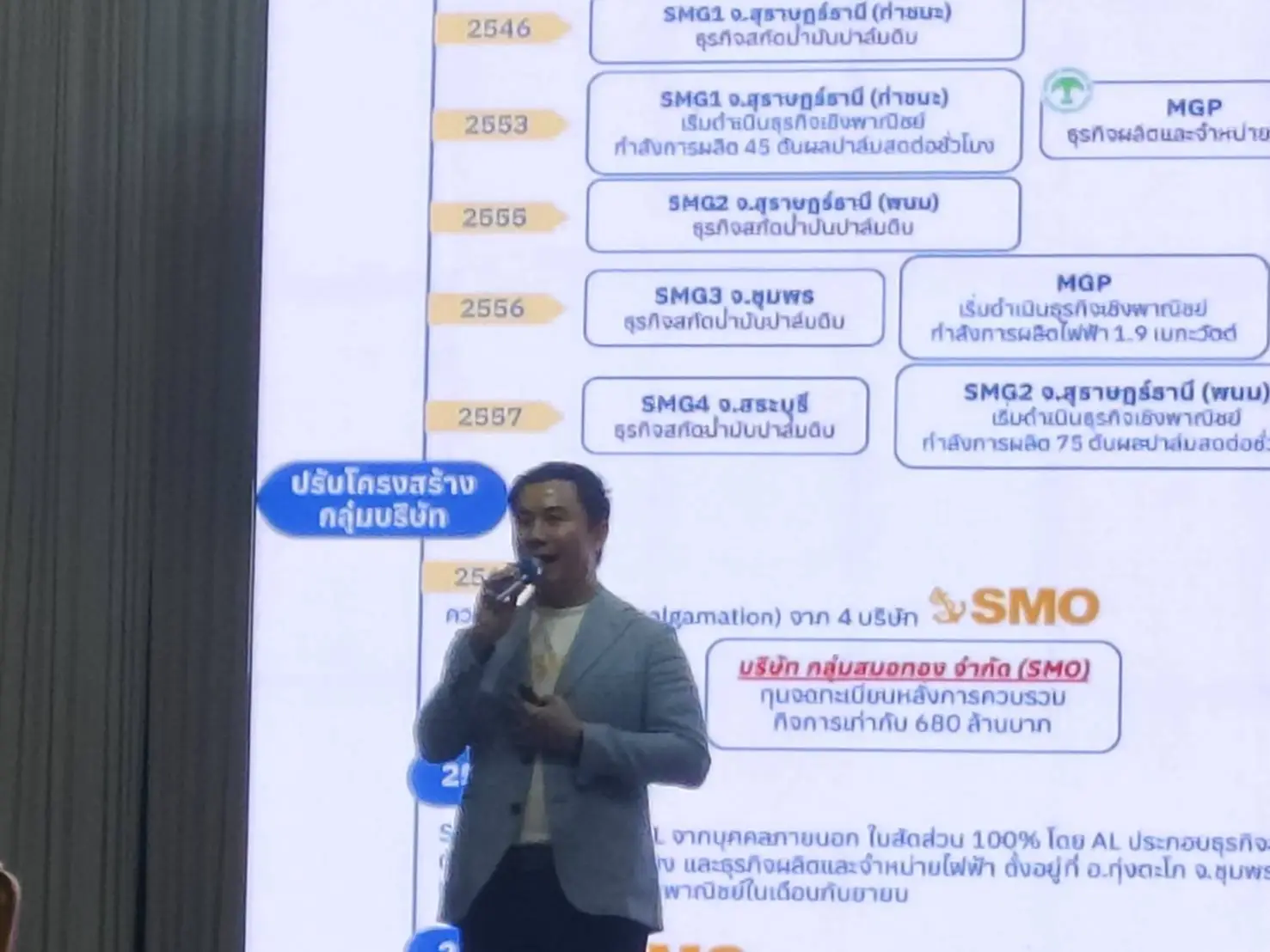 นายสมศักดิ์ ศิริชัยนฤมิตร ประธานเจ้าหน้าที่บริหาร APM กล่าว เสริมว่า SMO เป็นผู้ผลิตและจำหน่ายน้ำมันปาล์มดิบ รวมถึงผลิตไฟฟ้าจากก๊าซชีวภาพภายใต้แนวคิดเศรษฐกิจหมุนเวียน (Circular Economy) ที่ใส่ใจสิ่งแวดล้อมและชุมชน สอดคล้องกับแนวทางการพัฒนาอย่างยั่งยืนของประเทศ สำหรับผลประกอบการปี 2565–2567 SMO มีรายได้รวมกว่า 6 พันล้านบาทต่อปี และกำไรสุทธิเติบโตต่อเนื่อง โดยครึ่งปีแรกของปี 2568 มีกำไรสุทธิ 518.51 ล้านบาท คิดเป็นอัตรากำไรสุทธิ 10.55% สะท้อนความแข็งแกร่งทางการเงิน นายสมภพ กีระสุนทรพงษ์ จาก FSS กล่าวว่า SMO เป็นหนึ่งในผู้ผลิตน้ำมันปาล์มรายใหญ่ของประเทศ มีกำลังการผลิตรวม 240 ตันผลปาล์มสดต่อชั่วโมง และผลิตไฟฟ้าชีวภาพรวม 14.38 เมกะวัตต์ ภายใต้สัญญาขายไฟกับการไฟฟ้าส่วนภูมิภาค ด้านนายกิตติพงษ์ พวงมาลา ประธานเจ้าหน้าที่บริหาร บริษัท กลุ่มสมอทอง จำกัด (มหาชน) หรือ SMO เปิดเผยว่า บริษัท มีประสบการณ์ในการทำธุรกิจมายาวนานพร้อมด้วยทีมบริหารและบุคลากรที่มีความรู้ ความสามารถ ส่งผลให้บริษัทมีการพัฒนาทางธุรกิจอย่างต่อเนื่อง สร้างการเติบโตอย่างรวดเร็วและแข็งแกร่ง มีกำลังการผลิตรวม 240 ตันผลปาล์มสดต่อชั่วโมงเป็นหนึ่งในผู้ผลิตน้ำมันปาล์มลำดับต้นๆของประเทศ ซึ่งมีส่วนสำคัญในการช่วยขับเคลื่อนอุตสาหกรรมน้ำมันปาล์มของประเทศไทย เป็นการสร้างความมั่นคงทางอาหารทั้งทางตรงและทางอ้อม โดยบริษัทมีกลยุทธ์ที่สำคัญในการสร้างความแตกต่างและความสามารถในการแข่งขันในอุตสาหกรรมเพื่อการสร้างการเติบโตได้อย่างยั่งยืน ไม่ว่าจะเป็นทำเลที่ตั้งโรงงานในจุดยุทธศาสตร์ใกล้แหล่งวัตถุดิบ 4 แห่ง ประกอบด้วย 1.โรงงาน อ.ท่าชนะ จ.สุราษฎร์ธานี 2.โรงงาน อ.พนม จ.สุราษฎร์ธานี 3.โรงงานสระบุรี 4.โรงงาน AL จ.ชุมพร และการมีช่องทางในการขายสินค้าทั้งในและต่างประเทศช่วยเพิ่มศักยภาพด้านการขายและลดการพึ่งพิงการบริโภคภายในประเทศ รวมถึงการเป็นส่วนหนึ่งขององค์กรเจรจาระหว่างประเทศว่าด้วยน้ำมันปาล์มยั่งยืน (Roundtable Sustainabilily Palm Oil : RSPO)