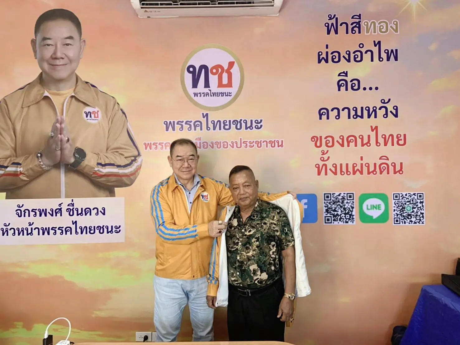 “พรรคไทยชนะขอต้อนรับทุกคนที่มีอุดมการณ์เดียวกัน ต้องการสร้าง ‘โปรไฟล์ทางการเมือง’ ที่ทรงเกียรติ เพื่อร่วมกันขับเคลื่อนประเทศให้มั่นคง ก้าวหน้า และทำงานเพื่อคนไทยอย่างเต็มกำลังความสามารถ” นายจักรพงศ์กล่าว
