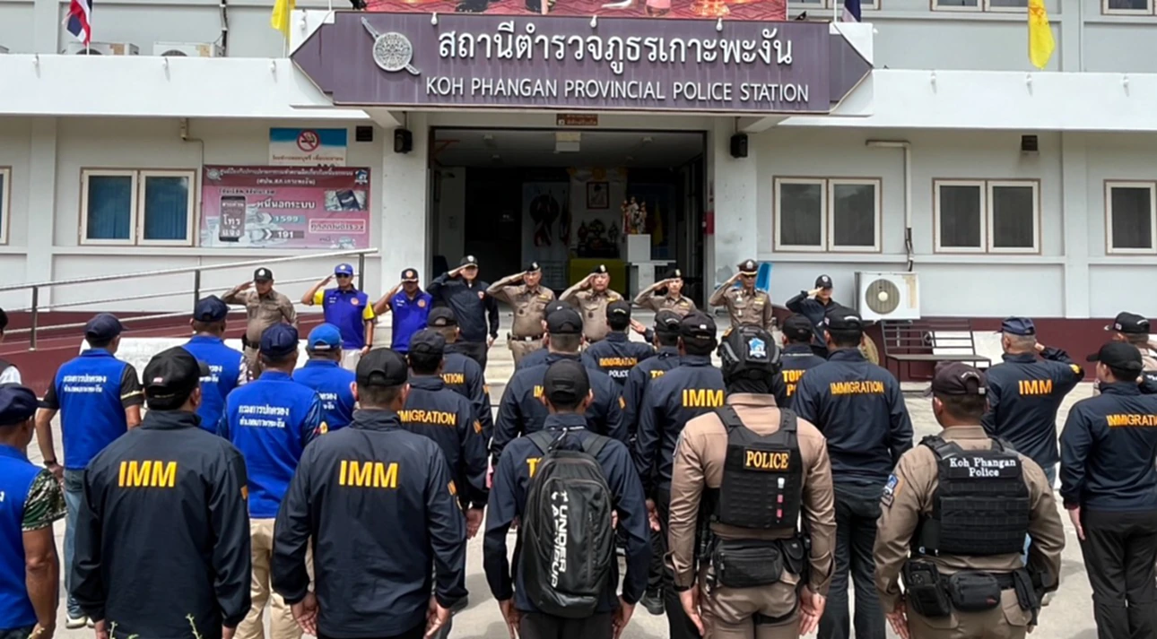 วันที่ 18 ต.ค. 2568 ตามนโยบายของ สำนักงานตำรวจแห่งชาติ ภายใต้การสั่งการของ พล.ต.อ.กิตติ์รัฐ พันธุ์เพ็ชร์ ผบ.ตร. และ พล.ต.อ.สำราญ นวลมา รอง ผบ.ตร./ผอ.ศูนย์ปราบปรามคนร้ายข้ามชาติและเข้าเมืองโดยผิดกฎหมาย รวมถึง พล.ต.ท.อิทธิพล อิทธิสารรณชัย ผู้ช่วย ผบ.ตร. ได้มอบหมายให้ สำนักงานตรวจคนเข้าเมือง (สตม.) ดำเนินการสกัดกั้น ตรวจสอบ และจับกุมคนต่างด้าวที่ประกอบธุรกิจโดยผิดกฎหมาย หรือจัดตั้งนอมินีดำเนินกิจการในไทย โดยเฉพาะในพื้นที่ท่องเที่ยวสำคัญ ภายใต้การอำนวยการของ พล.ต.ท.ภาณุมาศ บุญญลักษม์ ผบช.สตม. พร้อมด้วยคณะผู้บังคับบัญชาในพื้นที่ ได้แก่ พล.ต.ต.พันธนะ นุชนารถ, พล.ต.ต.ณัฐกร ประภายนต์, พล.ต.ต.ชูธเรศ ยิ่งยงดำรงสกุล, พล.ต.ต.สุวัฒน์ สุขศรี, พล.ต.ต.เศรษฐศักดิ์ ยิ้มเจริญ, พ.ต.อ.กันตวัฒน์ พงศ์สถาบดี, พ.ต.อ.ภาณุภาคยณ์ จิตต์ประยูรตี, พ.ต.อ.อภิชาต จันทร์สำเร็จ, พ.ต.อ.นฤวัต พุทธวิโร และ นายสุริยา บุญพันธ์ นายอำเภอเกาะพะงัน ได้ร่วมบูรณาการกำลังเจ้าหน้าที่หลายหน่วย เข้าตรวจสอบและกวดขันคนต่างชาติในพื้นที่เกาะพะงัน