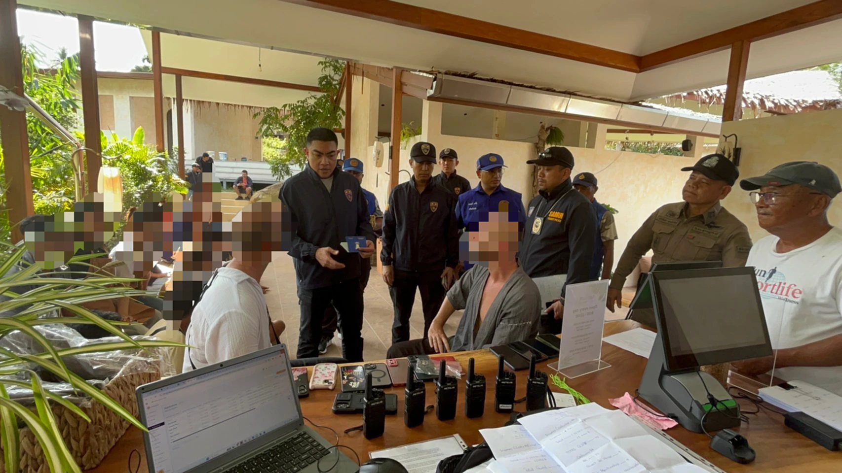 จากการสืบสวนพบว่ามีคนต่างชาติเปิดธุรกิจโรงแรมโดยไม่ได้รับอนุญาต เจ้าหน้าที่จึงได้เข้าตรวจสอบเป้าหมาย 2 จุด เมื่อวันที่ 17 ตุลาคมที่ผ่านมา สามารถจับกุมผู้ต้องหาได้รวม 8 ราย แบ่งเป็น สัญชาติอิสราเอล 2 ราย เมียนมา 4 ราย และไทย 2 ราย เบื้องต้นเจ้าหน้าที่แจ้งข้อหา “ให้คนต่างด้าวทำงานเกินสิทธิ์ที่ทำได้” และ “คนต่างด้าวทำงานโดยไม่ได้รับอนุญาต” พร้อมทั้งร้องทุกข์กล่าวโทษต่อพนักงานสอบสวน สภ.เกาะพะงัน เพื่อดำเนินคดีกับเจ้าของโรงแรมตัวจริงในข้อหา “เปิดโรงแรมโดยไม่ได้รับอนุญาต”