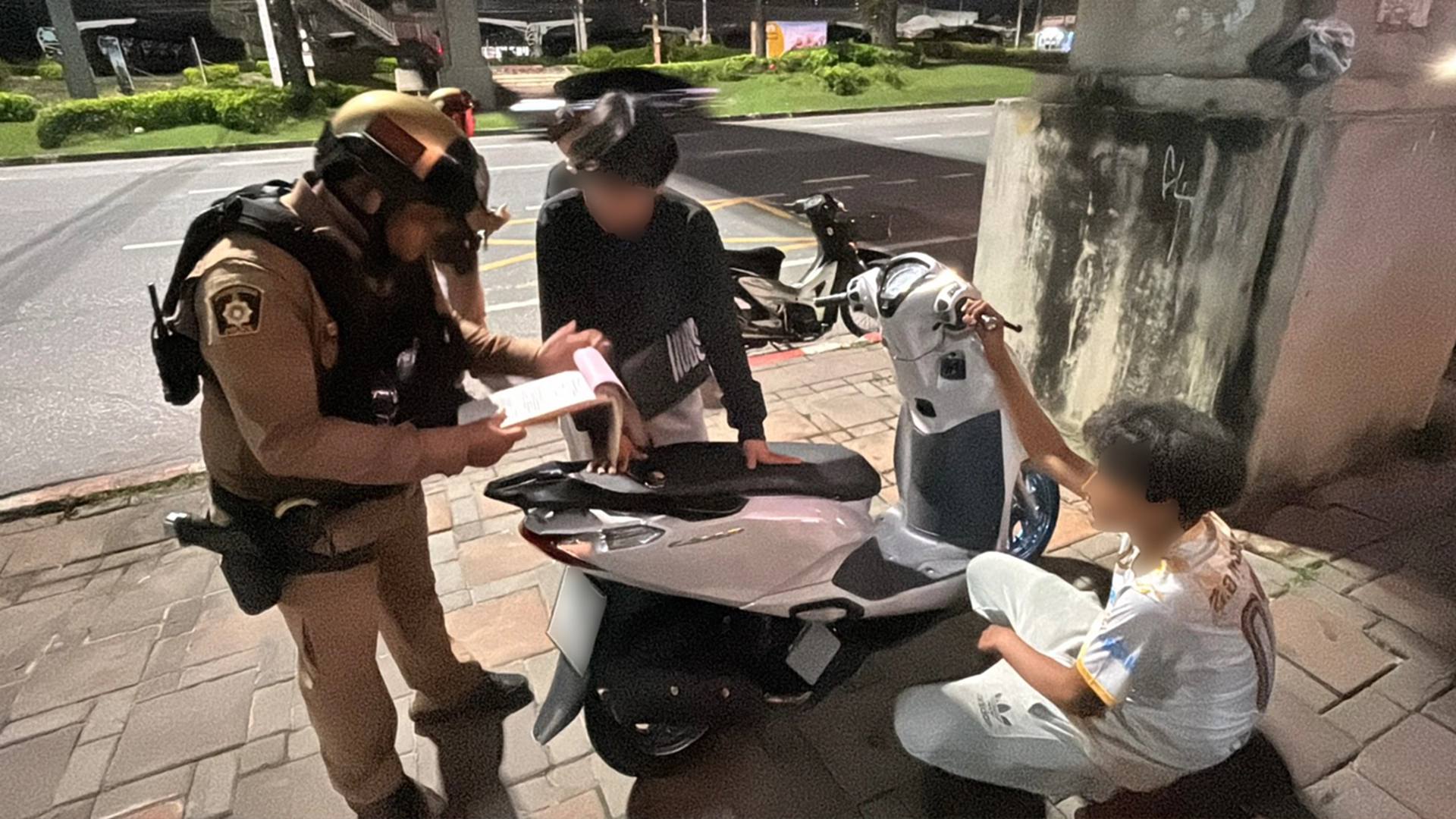 เมื่อเวลา 02.00 น. วันที่ 19 ตุลาคม 2568 พ.ต.ท.สุชาติ ดุสดี สวป.สภ.เมืองพัทยา พร้อมด้วย ร.ต.อ.ปานสาร ครองสิทธิ์ รอง สวป.สภ.เมืองพัทยา นำกำลังเจ้าหน้าที่สายตรวจออกตรวจตราพื้นที่ หลังได้รับการร้องเรียนจากประชาชนว่ามีกลุ่มวัยรุ่นรวมตัวขับขี่รถจักรยานยนต์แข่งขันกันบนถนน สร้างความเดือดร้อนรำคาญให้กับผู้ใช้รถใช้ถนนและชาวบ้านในละแวกดังกล่าว จุดเกิดเหตุอยู่บริเวณหน้าโลตัส ถนนสุขุมวิทพัทยา ตำบลหนองปรือ อำเภอบางละมุง จังหวัดชลบุรี