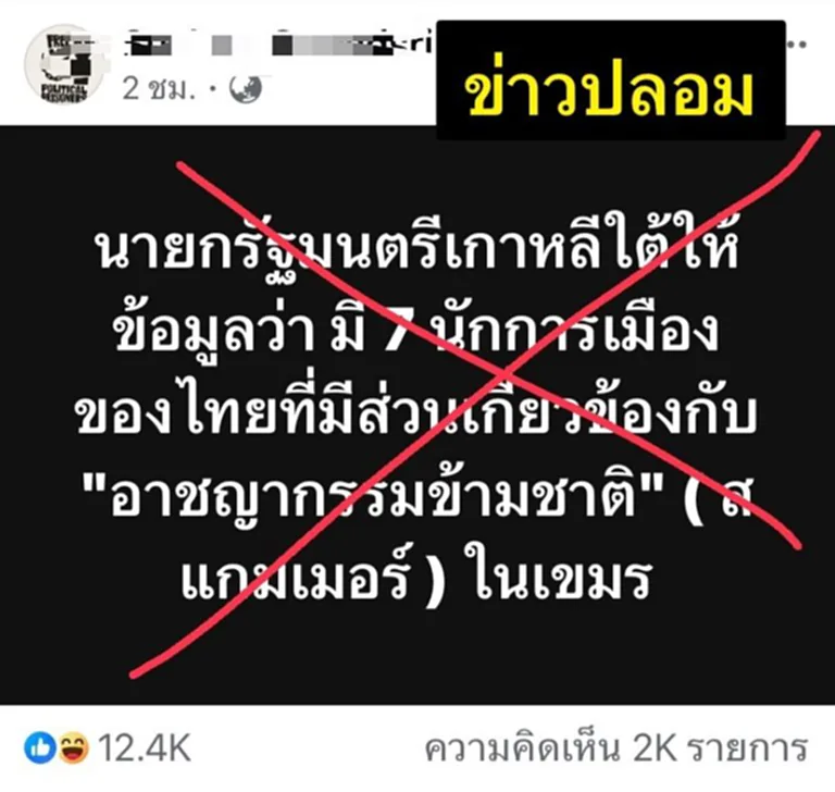 19 ตุลาคม 2568 นายอนุทิน ชาญวีรกูล นายกรัฐมนตรีและรัฐมนตรีว่าการกระทรวงมหาดไทย ให้สัมภาษณ์ถึงกระแสข่าวปลอม หรือเฟกนิวส์ในโลกออนไลน์ว่า ประธานาธิบดีเกาหลีใต้ จะเปิดชื่อนักการเมืองไทย 7 คน ที่มีส่วนเกี่ยวข้องกับแก๊งแสกมเมอร์ในประเทศกัมพูชา โดยนายอนุทิน ย้อนถามสื่อว่า เรื่องมาจากเพจใช่หรือไม่ ผู้สื่อข่าวจึงตอบว่า ใช่
