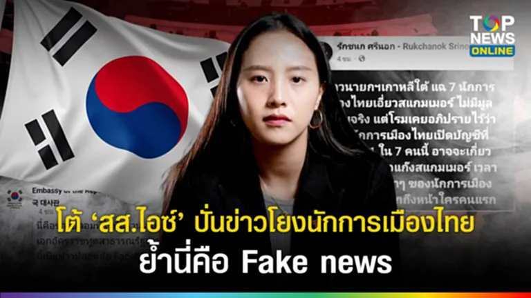 “สถานทูตเกาหลีใต้” สวนปาก “ไอซ์ รักชนก” ปั่นซ้ำข่าว 7 นักการเมืองไทย โยงสแกมเมอร์ ย้ำนี่คือ Fake news – Top News รายงาน