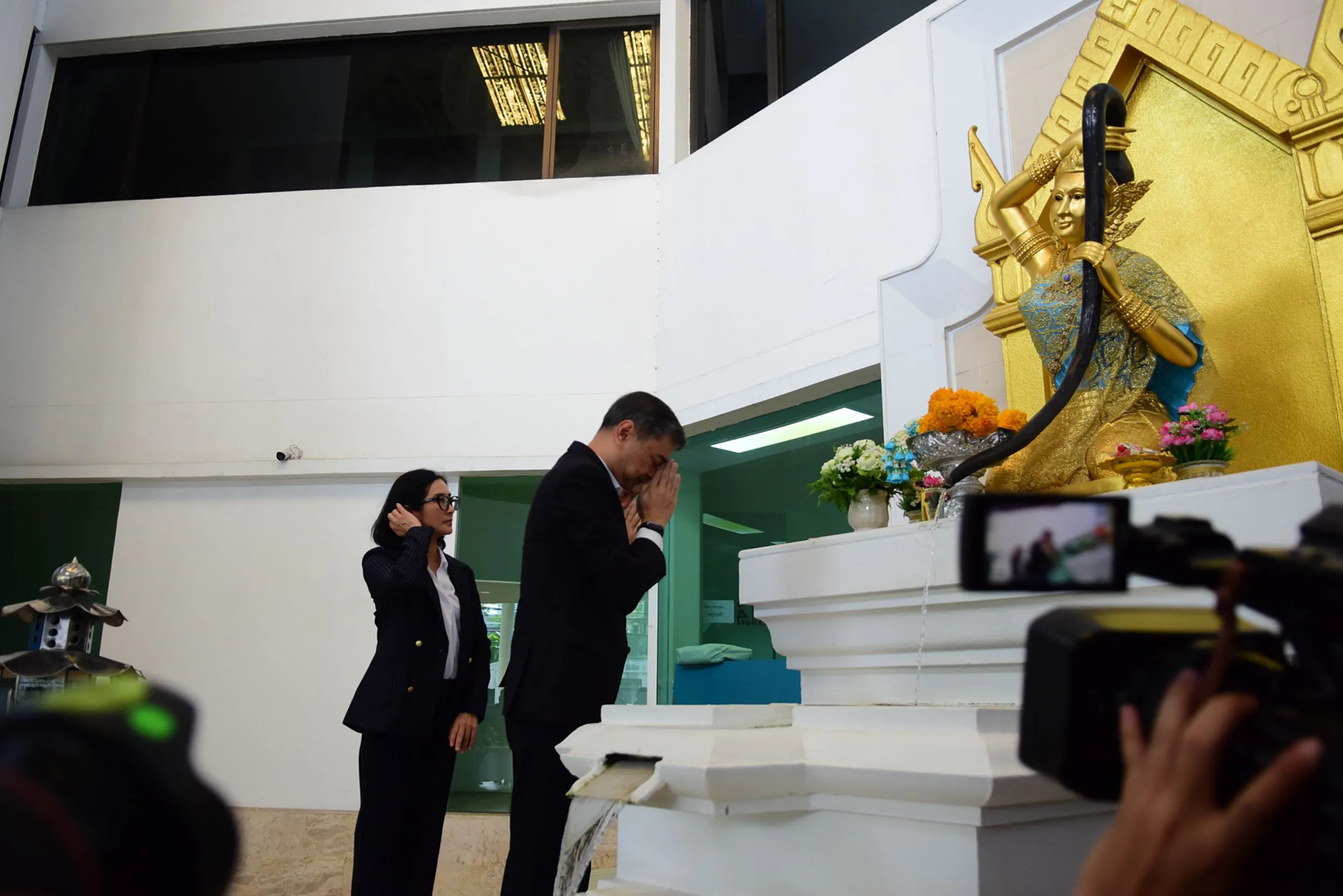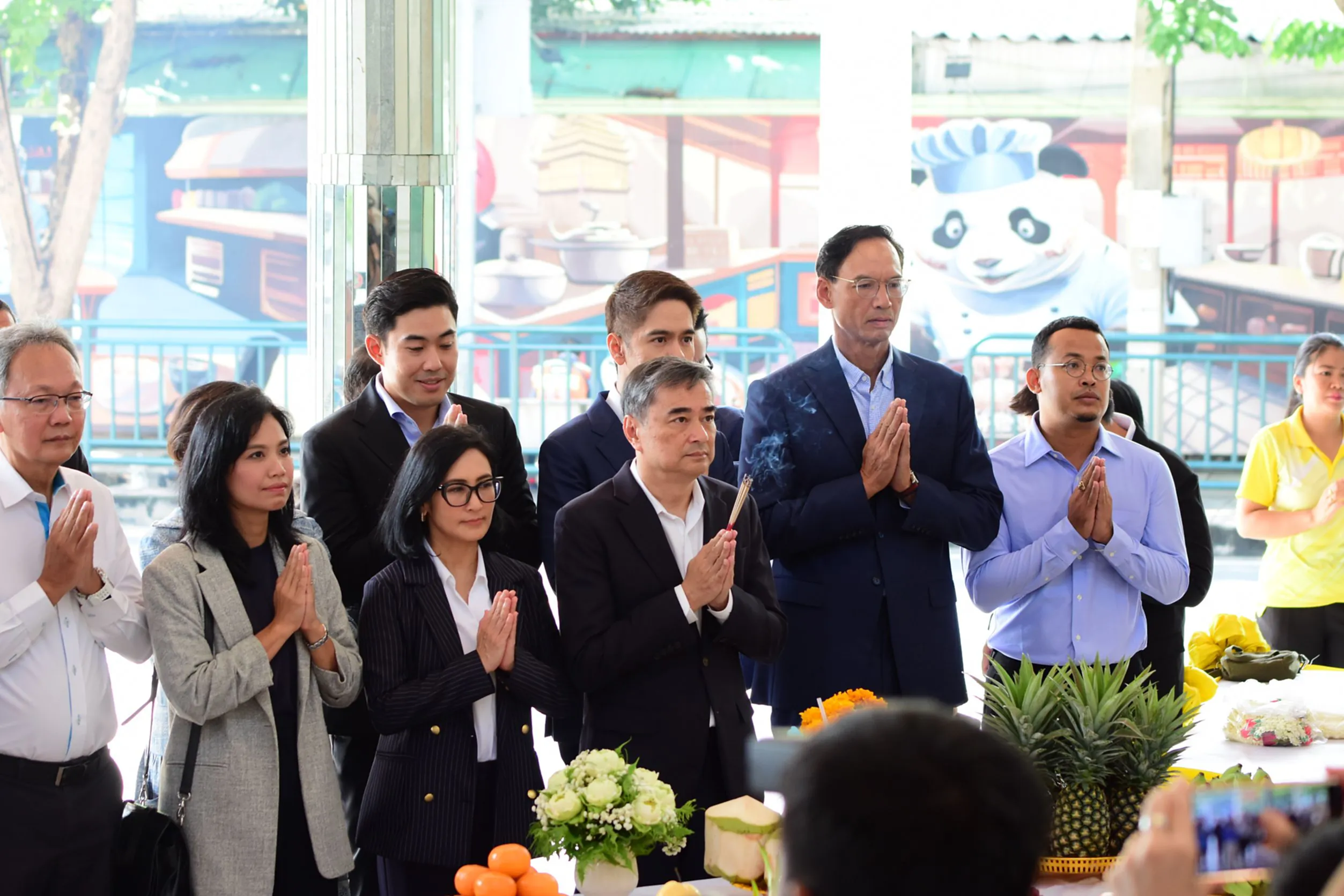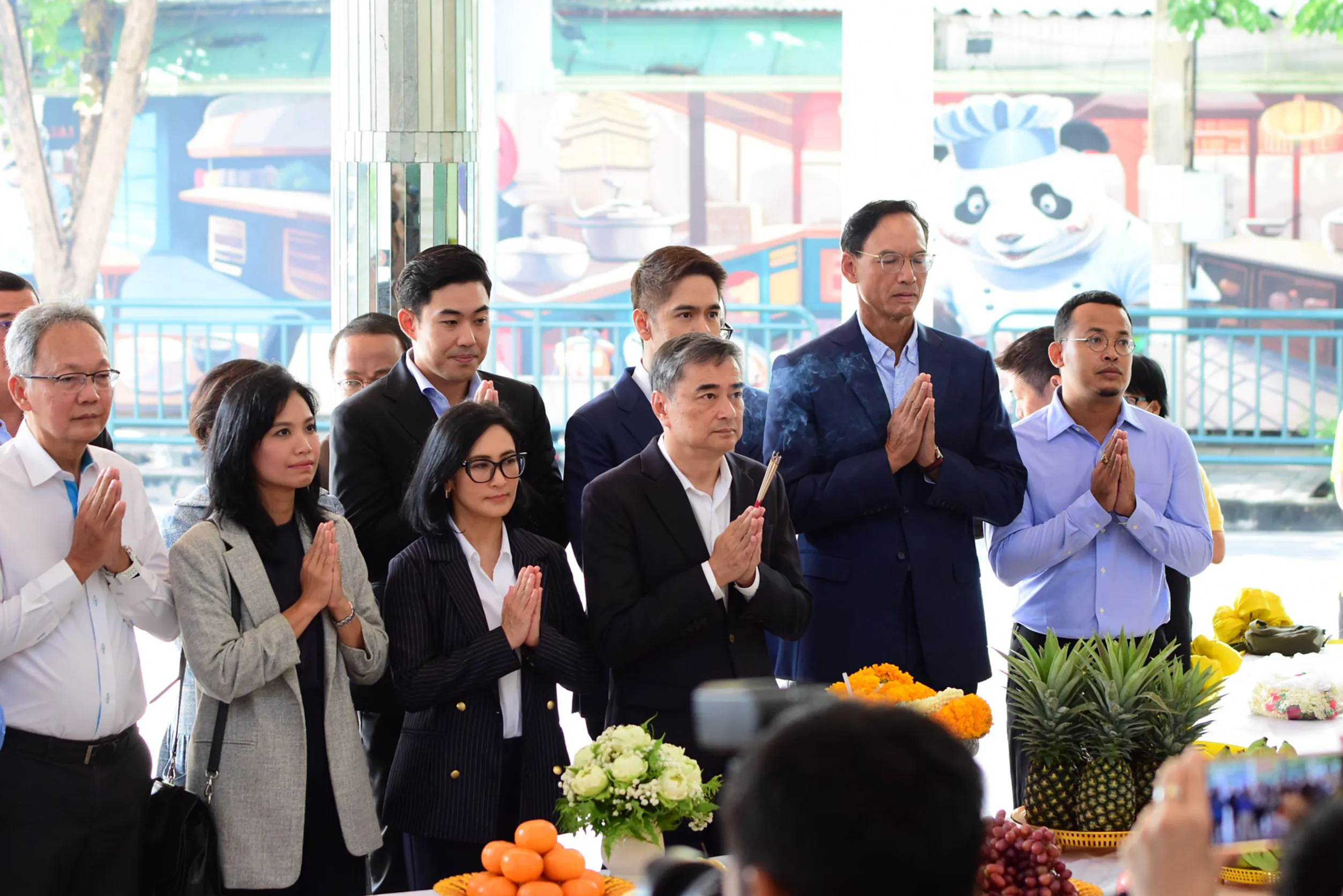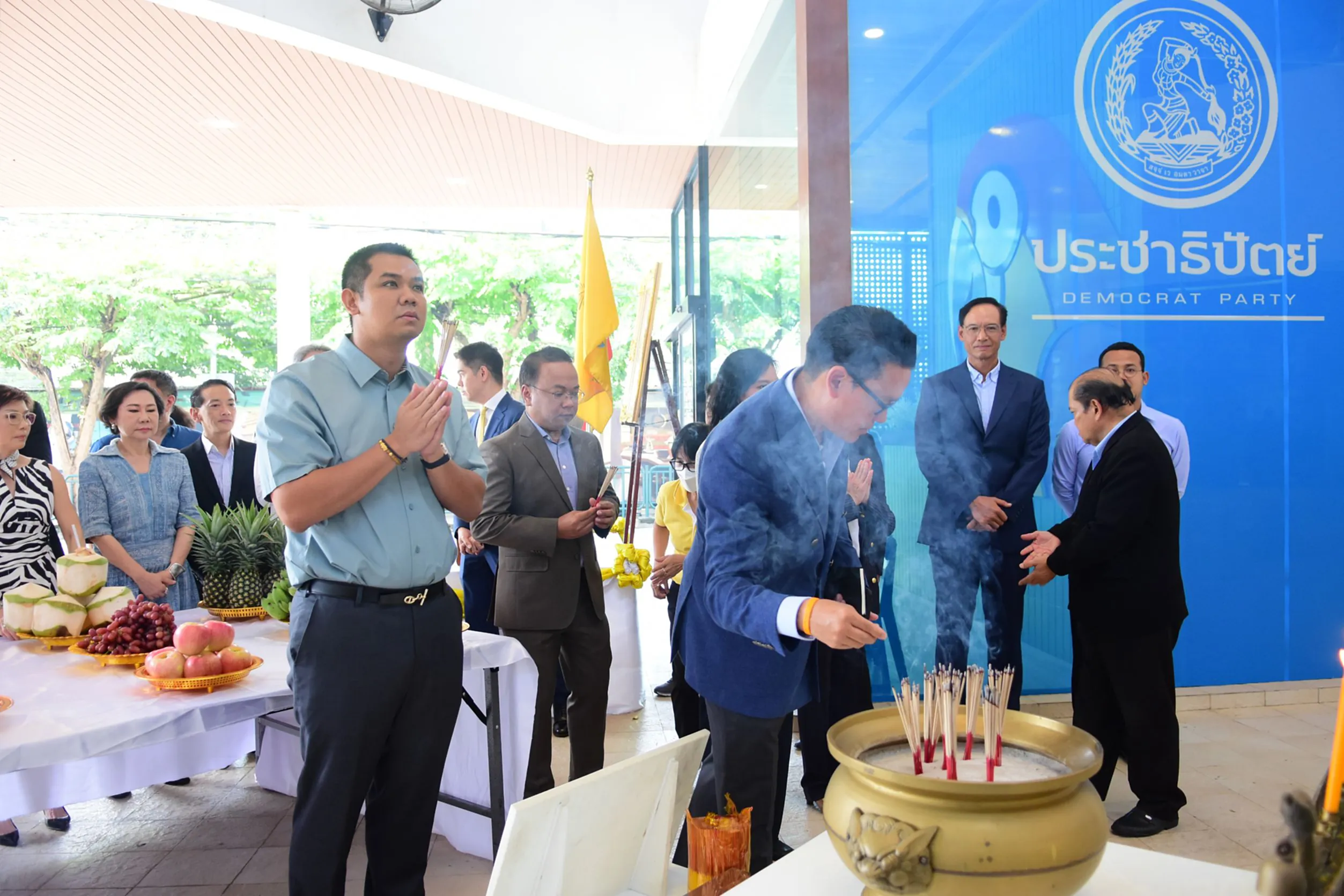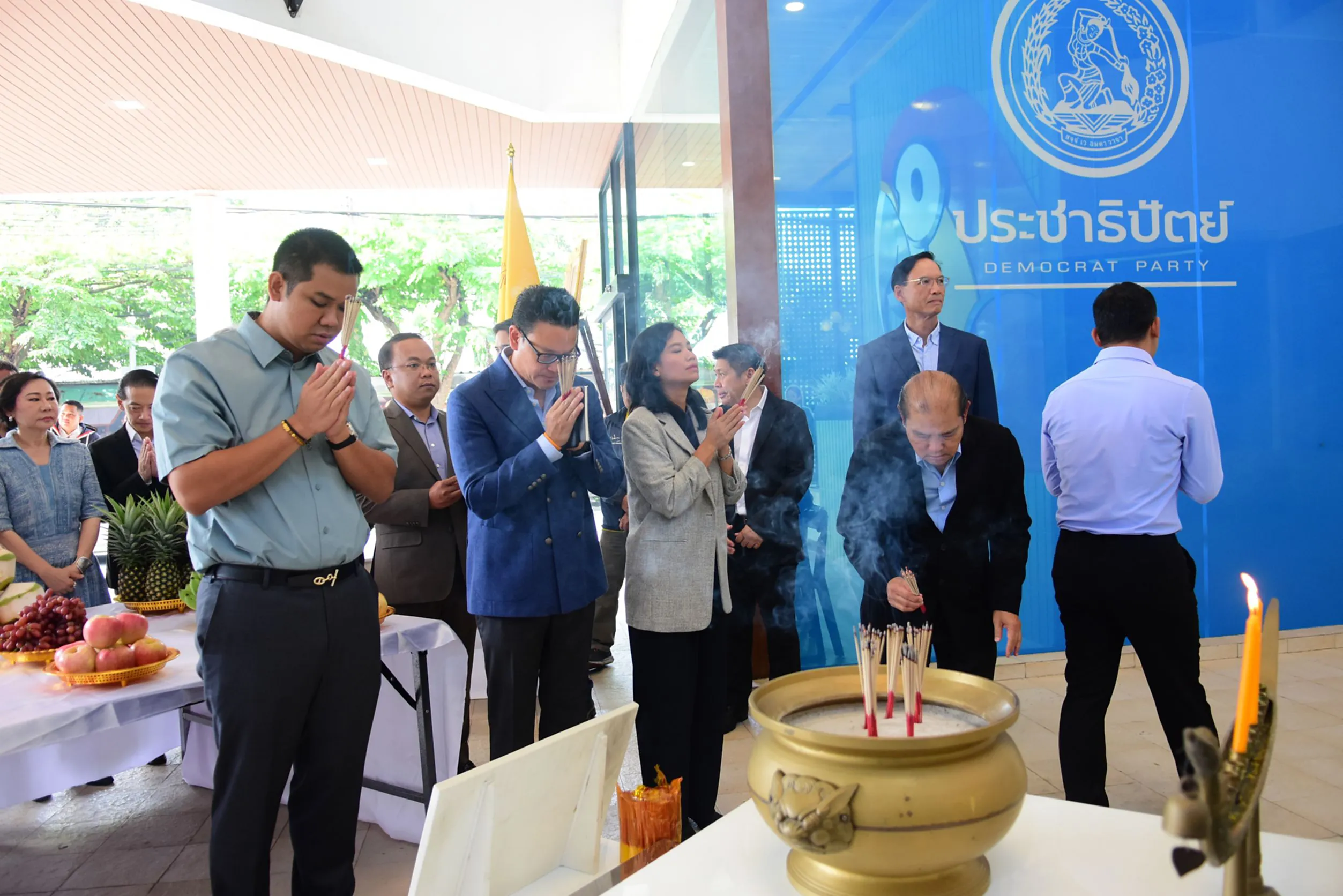 วันนี้ เวลา 09.00น. ที่พรรคประชาธิปัตย์ นายอภิสิทธิ์ เวชชาชีวะ หัวหน้าพรรคประชาธิปัตย์ พร้อมด้วยกรรมการบริหารพรรคชุดใหม่ เข้าสักการะพระแม่ธรณีบีบมวยผม หลังจากได้รับตำแหน่ง ไม่ว่าจะเป็นนายกรณ์ จาติกวณิช นายชัยชนะ เดชเดโช ดร.การดี เลี่ยวไพโรจน์ นางรัดเกล้า อินทวงศ์ สุวรรณคีรี นายอิสรา สุนทรวัฒน์ นายราเมศ รัตนเชวง นายสาทิตย์ วงศ์หนองเตย