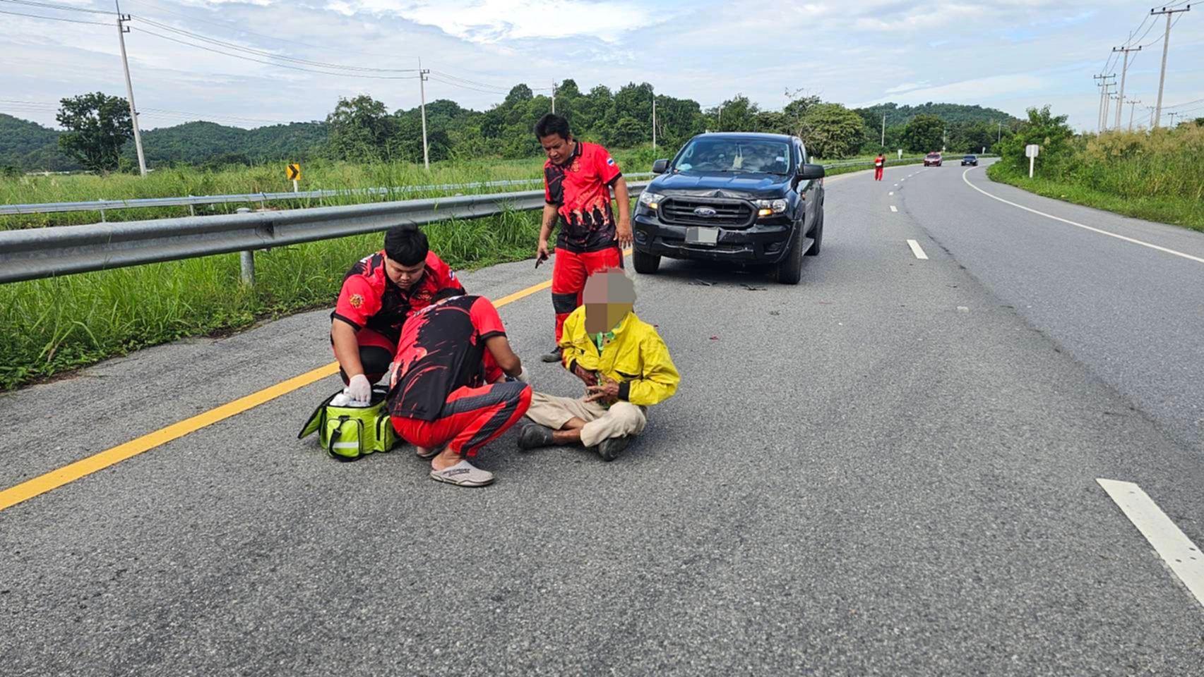 ที่เกิดเหตุพบรถยนต์กระบะ ฟอร์ด สีดำ จอดอยู่กลางถนน ในสภาพด้านหน้ามีร่องรอยเฉี่ยวชน ห่างออกไปประมาณ 100 เมตร พบรถจักรยานยนต์ Honda Wave 110 สีดำ สภาพพังเสียหาย มีผู้บาดเจ็บ 2 ราย เป็นชาย 1 ราย และหญิง 1 ราย ทราบชื่อภายหลังคือ นายฉลอง อายุ 72 ปี คนขับขี่ มีบาดแผลถลอกตามร่างกายและใบหน้า ตรวจบริเวณหลังพบรอยฟกช้ำและ นางสาวบัวลอย อายุ 61 ปี ซึ่งนั่งอยู่ในพ่วงข้าง มีบาดแผลถลอกตามร่างกาย และคิ้วขวาแตก เจ้าหน้าที่กู้ภัยได้ให้การปฐมพยาบาลเบื้องต้นก่อนนำส่งโรงพยาบาลสัตหีบ กม.10