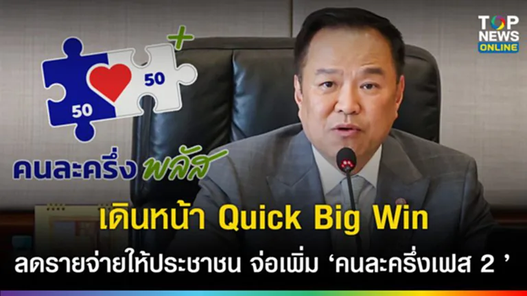 นายกฯ เดินหน้า Quick Big Win ลดรายจ่าย ปชช. จ่อเพิ่ม "คนละครึ่งเฟส 2" หากยังไม่ถึงไทม์ไลน์ยุบสภา