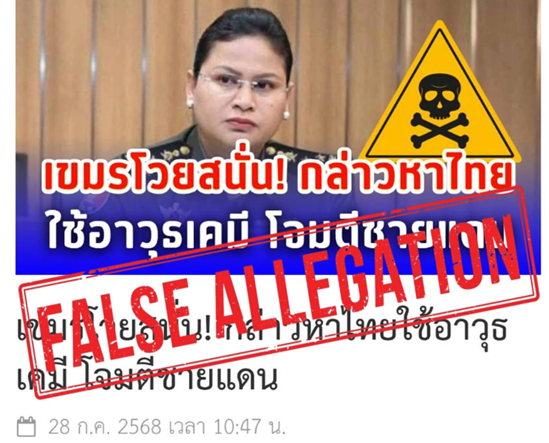 "ทบ." โต้เขมร ยันกองทัพไทยไม่เคยใช้อาวุธเคมีในการปฏิบัติการ ซัดเขมรบิดเบือน-สร้างความเข้าใจผิด เพื่อขอรับเงินช่วยเหลือจากต่างชาติ
