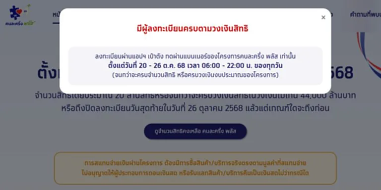 ‘คนละครึ่งพลัส’ 20 ล้านคน ใช้สิทธิครบแล้ว ลุ้นรัฐบาลเพิ่มแจก เฟส 2 เดือนม.ค.69