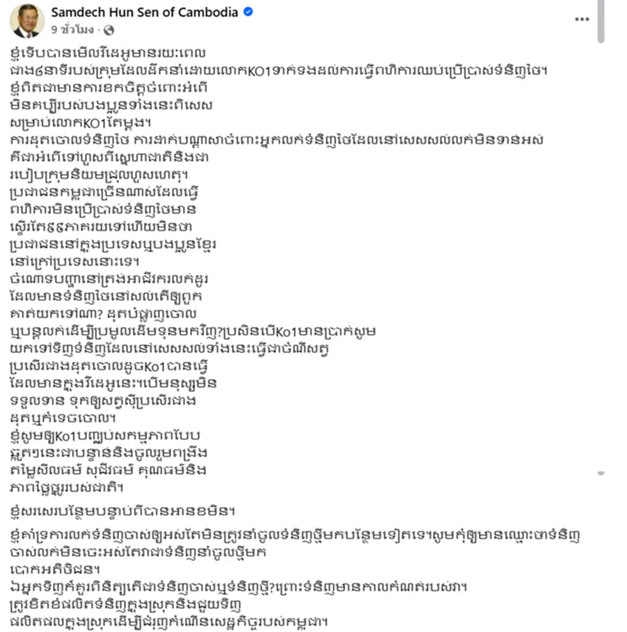 เมื่อวันที่ 21 ตุลาคม 2568 เวลา 05.30 น. นายนันทิวัฒน์ สามารถ อดีตเลขานุการรัฐมนตรีว่าการกระทรวงการต่างประเทศ และอดีตรองผู้อำนวยการสำนักข่าวกรองแห่งชาติ โพสต์ข้อความผ่านเฟซบุ๊ก Nantiwat Samart ระบุว่า อย่าตกขบวน เรื่องด่วนและร้อนแรงในเวลานี้ไม่มีอะไรเกินอาชญากรรมข้ามชาติในกัมพูชา ทั้งสแกมเมอร์ คอลเซ็นเตอร์ ฟอกเงิน อเมริกาได้จุดชนวนแล้ว สั่งยึดทรัพย์ของเครือปรินซ์ โฮลดิ้ง กรุ๊ป 5 แสนล้านบาท ที่มีเฉินจื้อ เป็นหัวขบวน สส.รีปับริกัน 3 คน เสนอร่างกฏหมาย HR 5490 ต่อกรรมาธิการต่างประเทศสภาผู้แทนสหรัฐ ให้ขึ้นบัญชีเขมรเป็นประเทศที่เกี่ยวข้องอาชญากรรมข้ามขาติ คว่ำบาตรเจ้าหน้าที่รัฐ และนักธุรกิจที่เกี่ยวข้อง มีรายชื่อ 40 คน