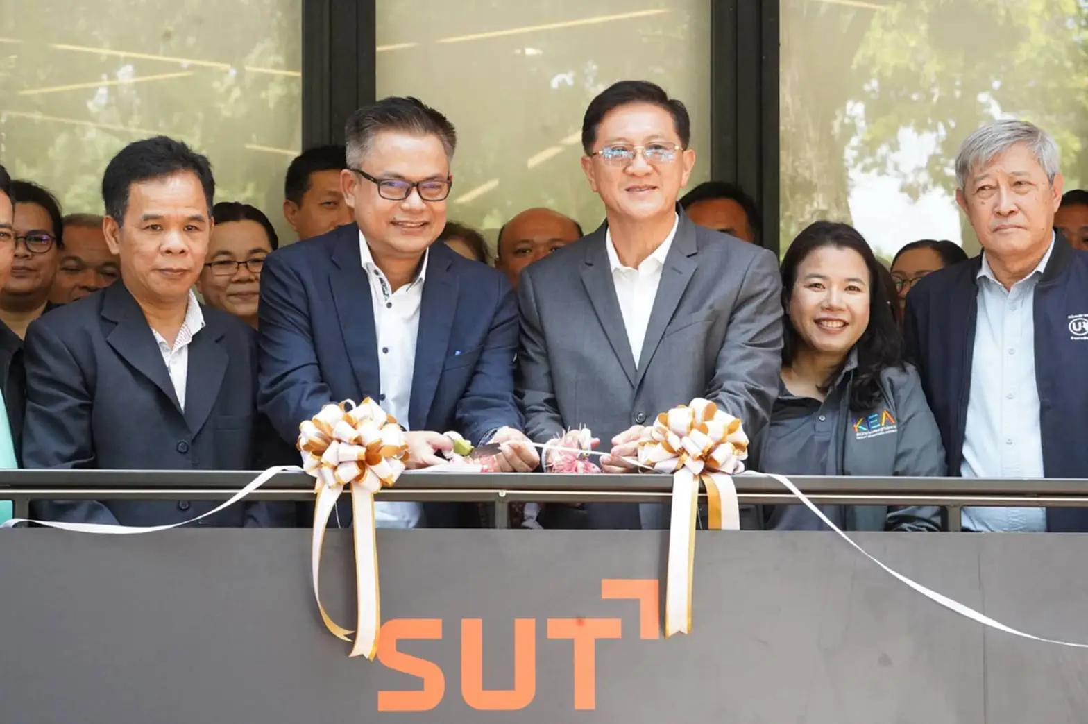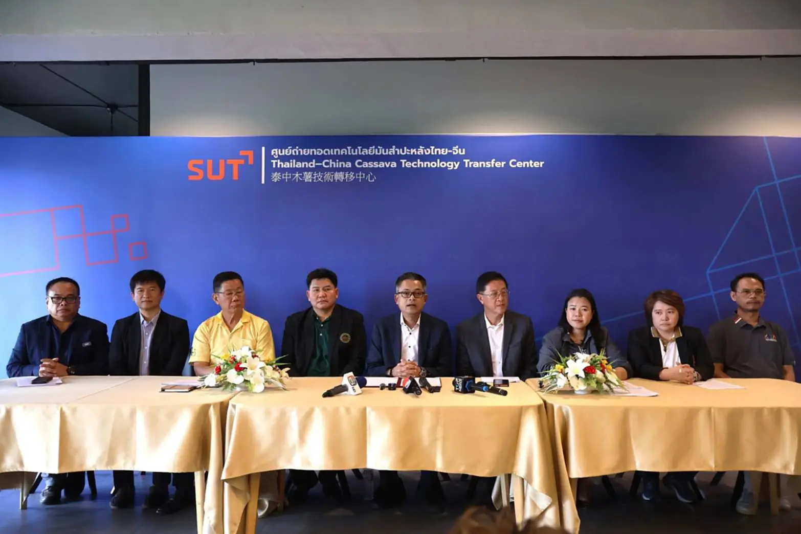 เมื่อวันอาทิตย์ที่ 19 ตุลาคม 2568 ดร.กิตติ สัจจาวัฒนา ผู้อำนวยการหน่วยบริหารและจัดการทุนด้านการพัฒนาระดับพื้นที่ (บพท.) กระทรวงการอุดมศึกษา วิทยาศาสตร์ วิจัยและนวัตกรรม (อว.) ดร.อโศก พลบำรุง ผู้อำนวยการฝ่ายวิจัยและนวัตกรรมเพื่อแก้ไขปัญหาความยากจนและลดความเหลื่อมล้ำ ผศ.ดร.พันทิพย์ ปิยะทัศนานนท์ รักษาการแทนผู้อำนวยการเทคโนธานี ผศ.ดร.กำไร เบือนสันเทียะ หัวหน้าโครงการจัดตั้งสำนักงานเศรษฐกิจโคราช เทคโนธานี พร้อมด้วยนายกิตติศักดิ์ ธีระวัฒนา รองผู้ว่าราชการจังหวัดนครราชสีมา ประธานสภาอุตสาหกรรมจังหวัดนครราชสีมา กลุ่มสมาคมผู้ผลิตและประกอบการมันสำปะหลังภาคตะวันออกเฉียงเหนือ พร้อมเครือข่ายธุรกิจชุมชนร่วมและเกษตรกรในพื้นที่ ร่วมงานพิธีเปิด “ศูนย์ถ่ายทอดเทคโนโลยีมันสำปะหลังไทย-จีน” หรือ Thailand–China Cassava Technology Transfer Center ณ มหาวิทยาลัยเทคโนโลยีสุรนารี จังหวัดนครราชสีมา