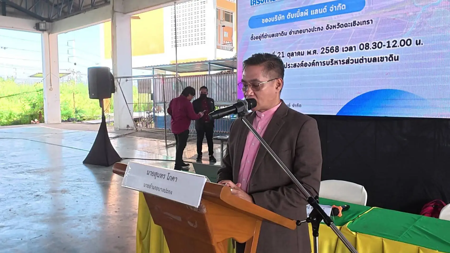 วันที่ 21 ตุลาคม 2568 ณ อาคารอเนกประสงค์ องค์การบริหารส่วนตำบลเขาดิน อำเภอบางปะกง จังหวัดฉะเชิงเทรา บริษัท ดับเบิ้ลพี แลนด์ จำกัด จัดเวทีรับฟังความคิดเห็นของประชาชน ครั้งที่ 2 เพื่อจัดทำร่างรายงานและมาตรการป้องกันและแก้ไขผลกระทบสิ่งแวดล้อม และมาตรการติดตามตรวจสอบผลกระทบสิ่งแวดล้อม ของโครงการนิคมอุตสาหกรรมฉะเชิงเทรา บลูเทค ซิตี้ (ส่วนขยาย ครั้งที่ 1) โดยมี นายสุนทร โภคา นายอำเภอบางปะกง เป็นประธานเปิดการประชุม พร้อมด้วย นายปุณยวิชญ์ ฝูงทองเจริญ ผู้จัดการโครงการ บริษัท ดับเบิ้ลพี แลนด์ จำกัด ส่วนราชการ