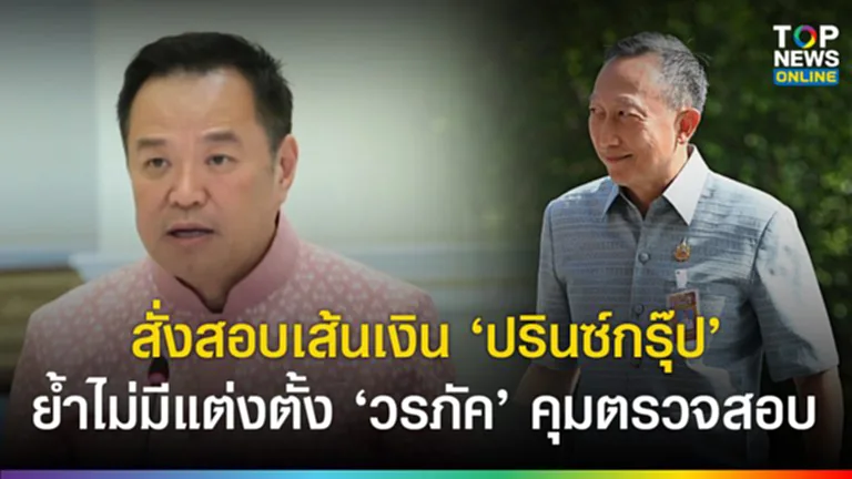 “นายกฯอนุทิน” ยันสั่งสอบเส้นเงิน “ปรินซ์กรุ๊ป” ยันไม่มีแต่งตั้ง “วรภัค” คุมตรวจเส้นทางเงินสีเทา พร้อมให้ชี้แจงโดนโยงสแกมเมอร์