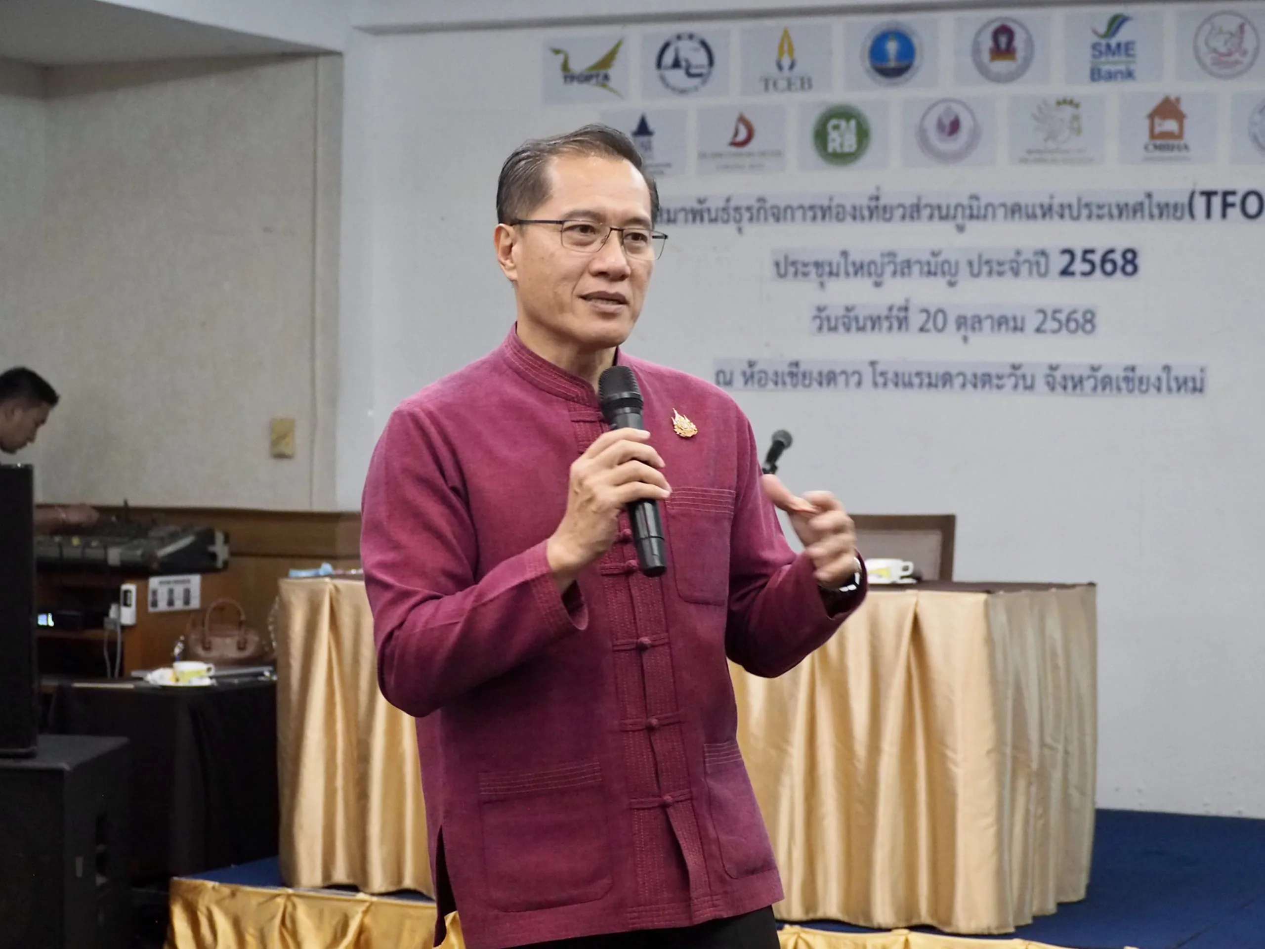 เมื่อวันที่ 20 ตุลาคม 2568 เวลา 19.30 น. สมาคมสมาพันธ์ธุรกิจการท่องเที่ยวส่วนภูมิภาคแห่ง ประเทศไทย (TFOPTA) จัดงานประชุมใหญ่วิสามัญประจำปี 2568 โดยมีสมาคมธุรกิจท่องเที่ยวจังหวัดเชียงใหม่ เป็นเจ้าภาพในการจัดงาน โดยได้รับเกียรติจาก นายอิทธิรัฐ สินารักษ์ ท่องเที่ยวและกีฬาจังหวัดเชียงใหม่ เป็นประธานเปิดงานเลี้ยงต้อนรับ “ครอบครัวสมาพันธ์” พร้อมด้วย นางฉลอม สงล่า ประธานสมาคมสมาพันธ์ธุรกิจการท่องเที่ยวส่วนภูมิภาคแห่งประเทศไทย (TFOPTA) นายศุภมิตร กิจจาพิพัฒน์ นายกสมาคมธุรกิจท่องเที่ยวจังหวัดเชียงใหม่ นายชัย อรุณานนท์ชัย ประธานสภาอุตสาหกรรมท่องเที่ยวแห่งประเทศไทย TCEB, SME Bank นายกสมาคมพันธมิตร คณะกรรมการและสมาชิกTFOPTA ร่วมงาน