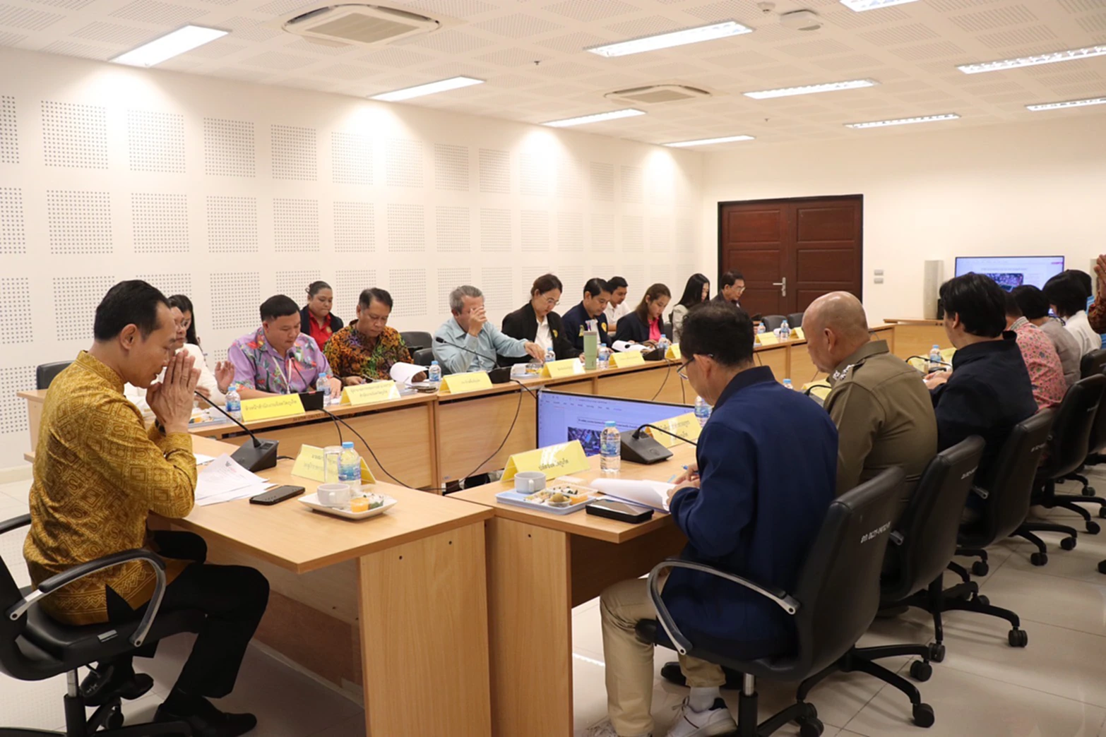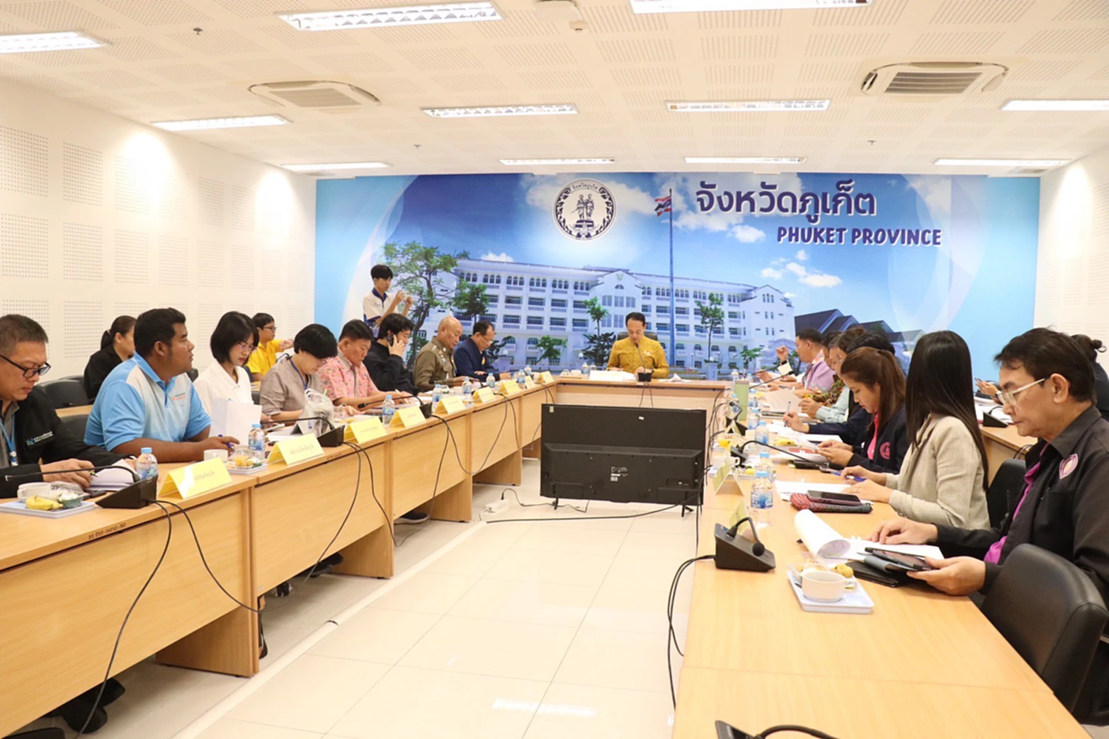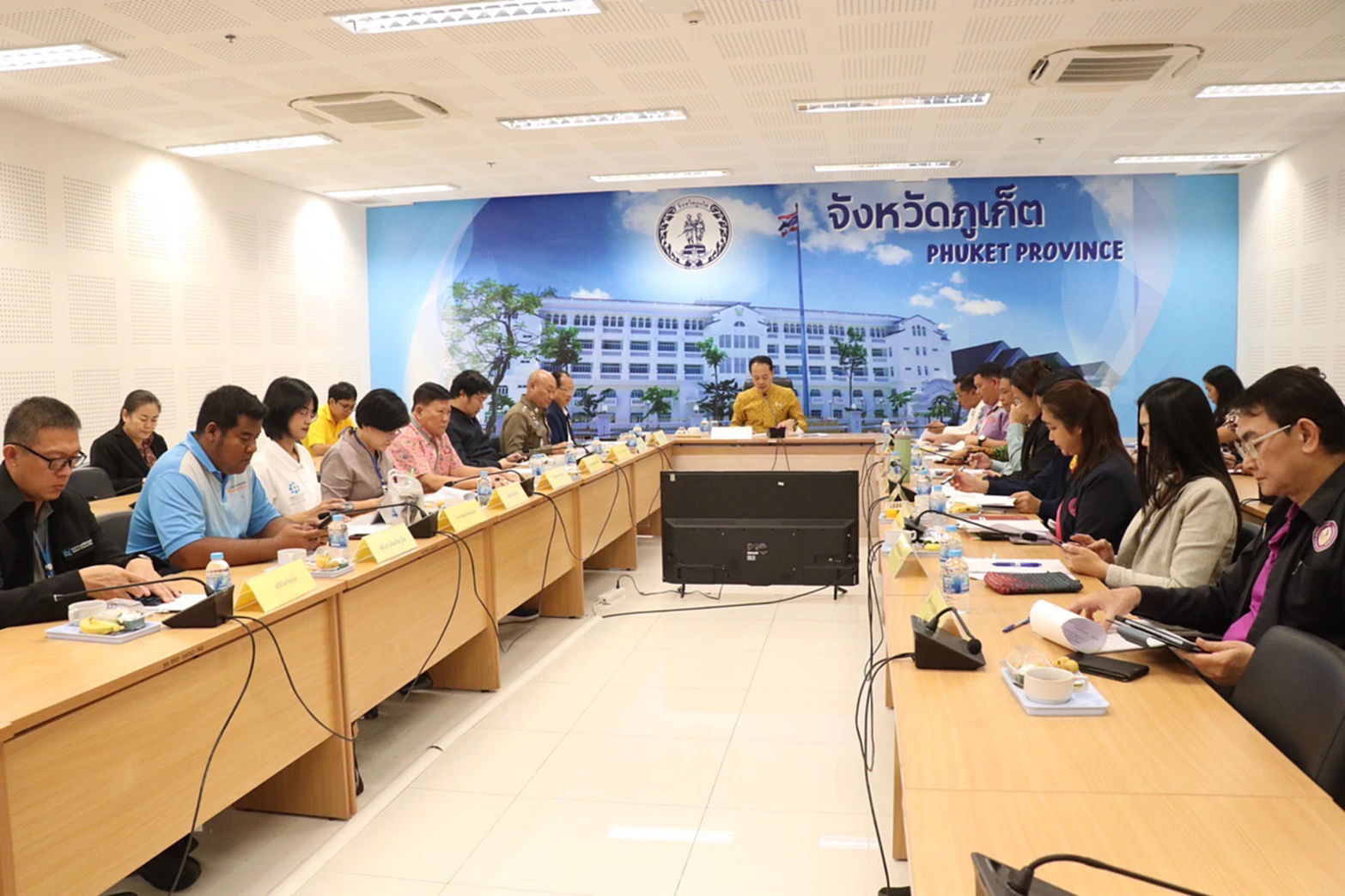 วันที่ 21 ต.ค. 2568 ที่ห้องประชุมจันพันวา ศาลากลางจังหวัดภูเก็ต นายสมาวิษฎ์ สุพรรณไพ รองผู้ว่าราชการจังหวัดภูเก็ต เป็นประธานการประชุมคณะกรรมการบริหารศูนย์ราชการระดับจังหวัด จังหวัดภูเก็ต โดยมี พ.ต.อ.กษิดิน จ่ายกระโทก ผกก.ฝอ.ภ.จว.ภูเก็ต, นายเรวัติ อารีรอบ นายกองค์การบริหารส่วนจังหวัดภูเก็ต, นายประสิทธิ์ สินเสาวภาคย์ รองนายกเทศมนตรีนครภูเก็ต, นายณรงค์ อ่อนอินทร์ หัวหน้าสำนักงานจังหวัดภูเก็ต, นายวุฒิชัย บำรุงรัตน์ ท้องถิ่นจังหวัดภูเก็ต และนายไอศูรย์ สุธรรมเทวกุล ธนารักษ์พื้นที่ภูเก็ต เข้าร่วมประชุม พร้อมด้วยคณะกรรมการบริหารศูนย์ราชการระดับจังหวัด จังหวัดภูเก็ต