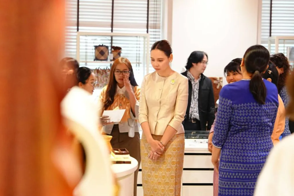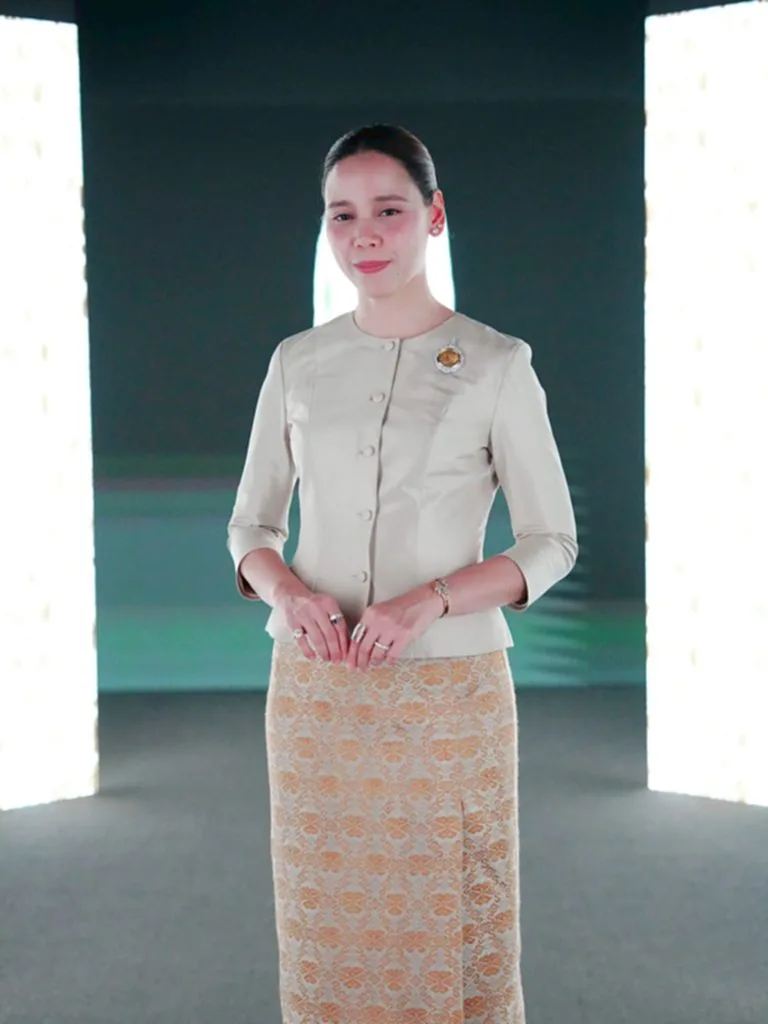 ไม่เพียงเท่านั้น ลวยลายของผ้า เป็นลายพระราชทาน “สิริราชพัสตราภรณ์” ที่ย้อมสีธรรมชาติ ตามโครงการผ้าไทยใส่ให้สนุก พระราชทานเมื่อวันที่ 9 กุมภาพันธ์ 2568 ณ มหาวิทยาลัยราชภัฏอุดรธานี