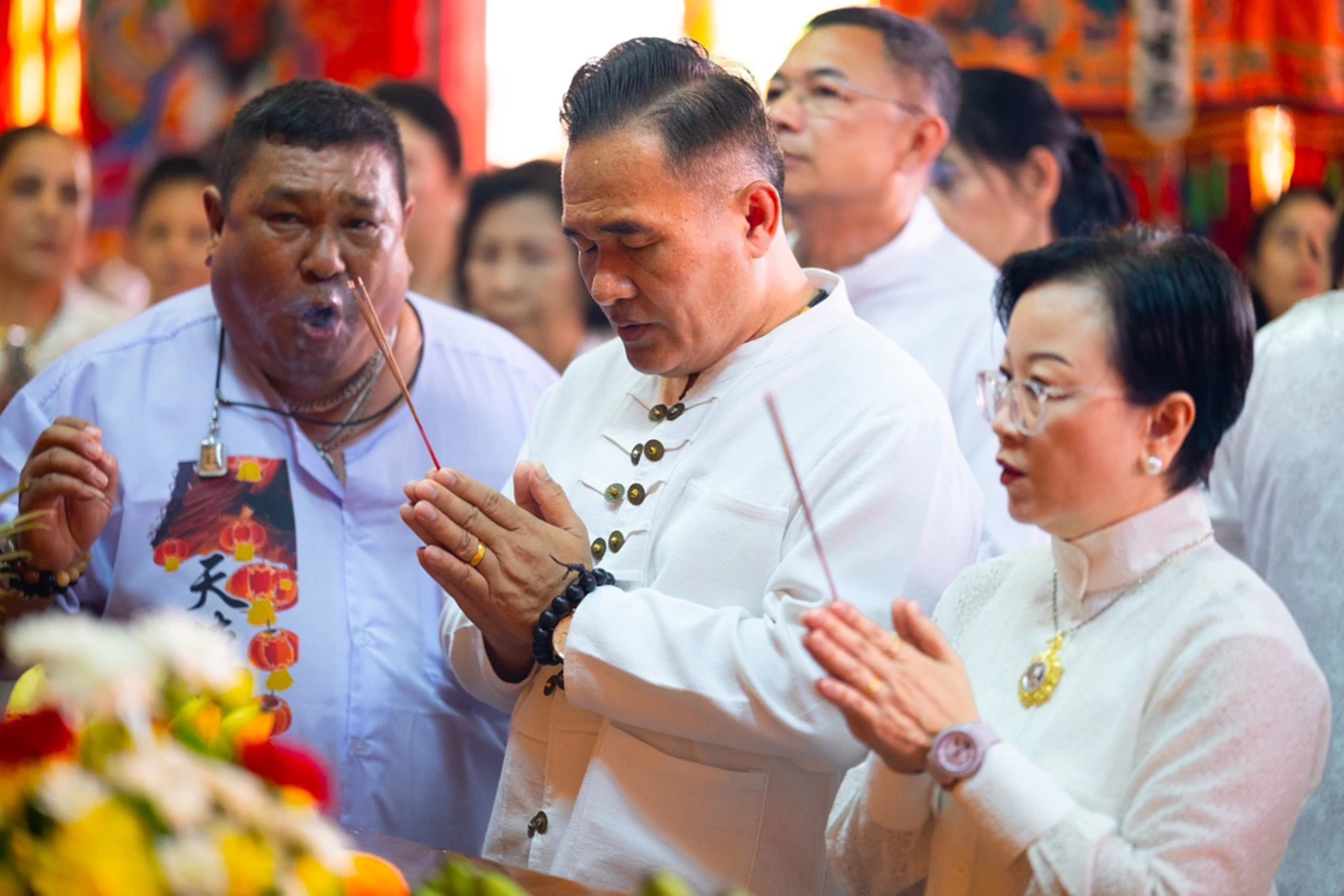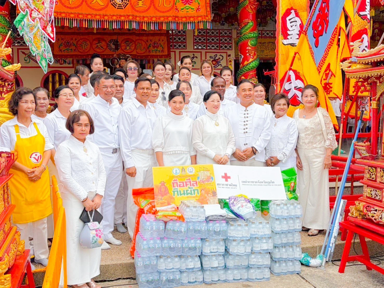 ภายในงาน ผู้ว่าราชการจังหวัดและคณะได้ร่วมสักการะสิ่งศักดิ์สิทธิ์ประจำศาลเจ้าเพื่อความเป็นสิริมงคล พร้อมมอบข้าวสารและน้ำดื่มเพื่อสนับสนุนการประกอบอาหารแจกจ่ายแก่ประชาชนและนักท่องเที่ยวที่มาร่วมงานกินเจ จากนั้นได้ร่วมรับประทานอาหารเจกับคณะกรรมการและประชาชนในบรรยากาศที่อบอุ่น ทั้งยังได้รับฟังบรรยายประวัติศาสตร์ของชาวจีนโพ้นทะเลในภูเก็ตและความเป็นมาของศาลเจ้าจากประธานชมรมฯ