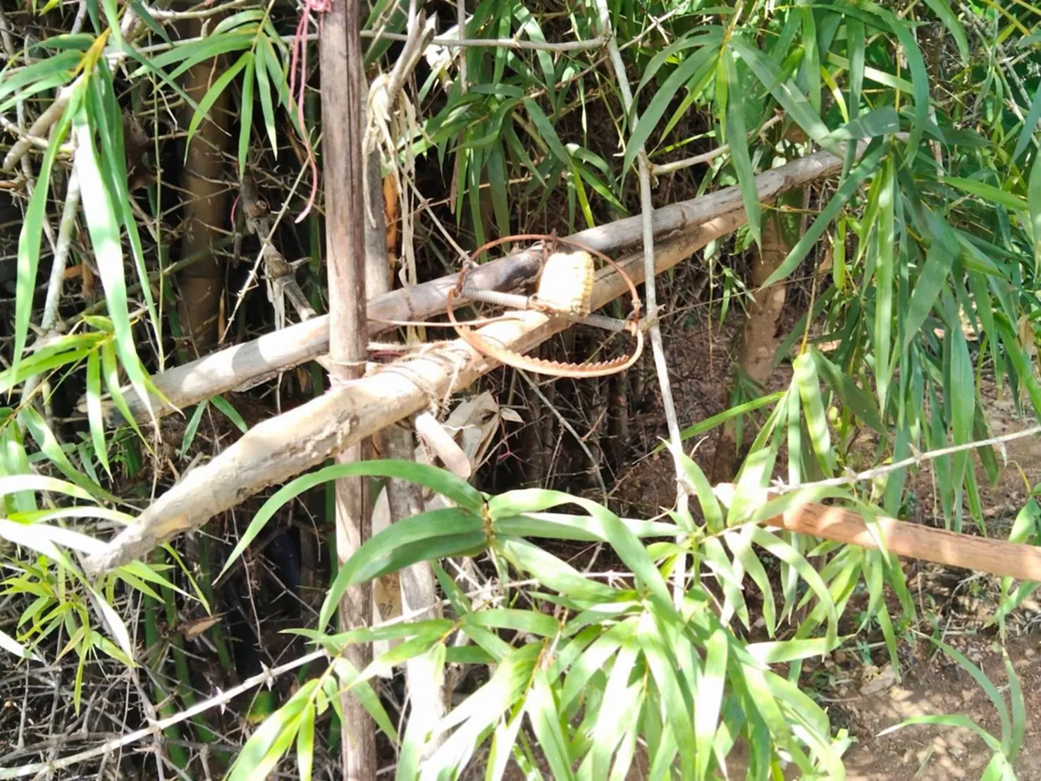 3. ลาดตระเวนเชิงคุณภาพและค้นหาแร้วดักสัตว์ในพื้นที่แนวกันชนรอบป่า พบกับดักขนาดใหญ่ 2 อัน กับดักขนาดเล็ก 12 อัน กรง 1 อัน