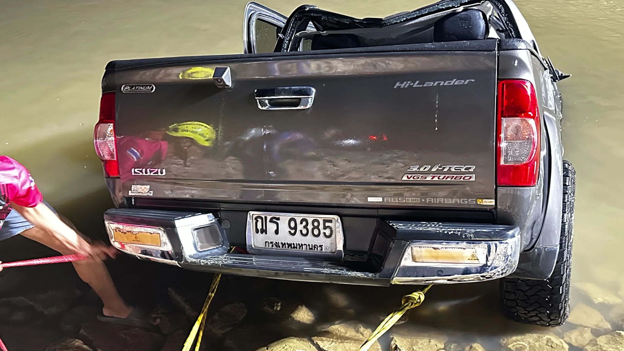 เมื่อเจ้าหน้าที่ไปถึงที่เกิดเหตุ พบว่าบริเวณราวสะพานมีร่องรอยการชนอย่างแรงจนราวสะพานหักพังเสียหาย ด้านล่างในแม่น้ำพบรถกระบะยี่ห้อโตโยต้า สีบรอนซ์ หมายเลขทะเบียน ฌร 9385 กรุงเทพมหานคร พลิกคว่ำอยู่ห่างจากสะพานประมาณ 10 เมตร เจ้าหน้าที่ประดาน้ำลงค้นหาใช้เวลาเพียง 5 นาที จึงพบผู้เสียชีวิตติดอยู่ภายในห้องโดยสาร ไม่สามารถออกมาได้ ทราบชื่อผู้เสียชีวิตคือ นายชัยพร อินผดุง อายุ 41 ปี ตำแหน่งนักวิชาการเกษตรชำนาญการ สังกัดกรมส่งเสริมการเกษตร ในห้องโดยสารยังพบสัมภาระเป็นกระเป๋าคอมพิวเตอร์โน๊ตบุ๊กสีดำ สมุดธนาคารหนึ่งเล่ม เจ้าของบัญชีคือนายพรชัย