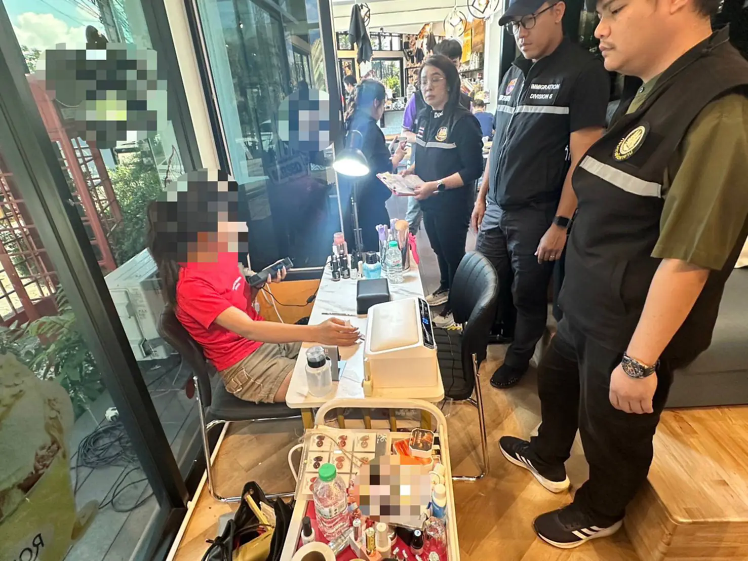 โดยผู้ต้องหาชาวเมียนมา ให้การรับว่า ตนมีใบอนุญาตทำงานกับนายจ้างคนไทย แต่ได้ลาออกจากงานเดิมและได้มาทำงานเป็นช่างทำเล็บที่ร้านแห่งนี้เป็นระยะเวลาประมาณ 2 เดือน โดยได้รับค่าจ้างเดือนละ 14,000 บาท และผู้ต้องหาซึ่งเป็นนายจ้างก็ได้ให้การยอมรับว่า ตนได้รับคนต่างด้าวรายนี้เข้ามาทำงานโดยไม่ได้แจ้งเปลี่ยนนายจ้างแต่อย่างใด เจ้าหน้าที่ชุดจับกุมจึงได้ควบคุมตัวผู้ต้องหาส่งพนักงานสอบสวน สภ.เมืองเชียงใหม่เพื่อดำเนินคดีตามกฎหมายต่อไป