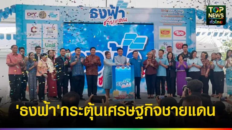 งานธงฟ้าเยียวยาและกระตุ้นเศรษฐกิจชายแดน จัดขึ้นระหว่างวันที่ 22–24 ตุลาคม 2568 ตั้งแต่เวลา 09.00 น. ถึง 20.00 น. ณ สวนเฉลิมพระเกียรติ 80 พรรษาฯ (สวนใหม่) อำเภอเมืองสุรินทร์ มีผู้ผลิต กลุ่มเกษตรกร วิสาหกิจชุมชน เครือข่ายธุรกิจ ผู้ประกอบการ SMEs จากจังหวัดสุรินทร์ รวมถึง 6 จังหวัดชายแดนไทย–กัมพูชา และพื้นที่ใกล้เคียง เข้าร่วมกว่า 500 รายการสินค้า ครอบคลุม 10 หมวด ลดราคาสูงสุดถึง 60% เช่นบะหมี่กึ่งสำเร็จรูป ปลากระป๋อง ซอสปรุงรส น้ำยาซักผ้า เครื่องใช้ไฟฟ้า เสื้อผ้า เครื่องครัว ไข่ไก่เบอร์ M แผงละ 80 บาท น้ำตาลทราย กิโลกรัมละ 20 บาท น้ำมันพืชปาล์ม ขวดละ 40 บาท ข้าวหอมมะลิ (5 กก.) ถุงละ 120 บาท และยังช่วยเหลือผู้ประกอบการในพื้นที่ 7 จังหวัดชายแดนไทย-กัมพูชา สินค้ารวมสินค้าจากผู้ประกอบการชายแดนเป็น เซตสินค้าอีกด้วย ซึ่งได้รับความสนใจจากชาวจังหวัดสุรินทร์ ต่อคิวยาวซื้อสินค้ากันเป็นจำนวนมาก.