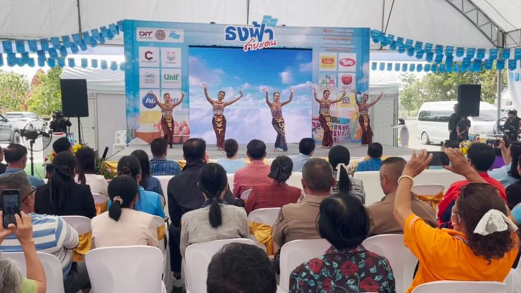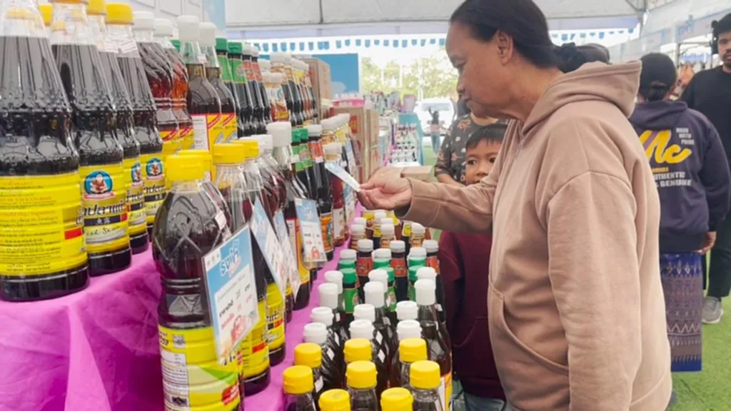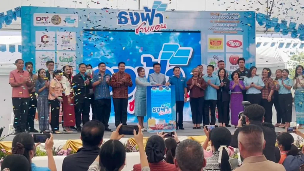 สุรินทร์-จัดงาน ธงฟ้า เยียวยาและกระตุ้นเศรษฐกิจชายแดน เดินหน้านโยบาย Quick Big Win ของกระทรวงพาณิชย์ มีผู้ผลิต กลุ่มเกษตรกร วิสาหกิจชุมชน เครือข่ายธุรกิจ ผู้ประกอบการ SMEs จาก 7 จังหวัดชายแดนไทย–กัมพูชา และพื้นที่ใกล้เคียง เข้าร่วมกว่า 500 รายการสินค้า ครอบคลุม 10 หมวด ลดราคาสูงสุดถึง 60%