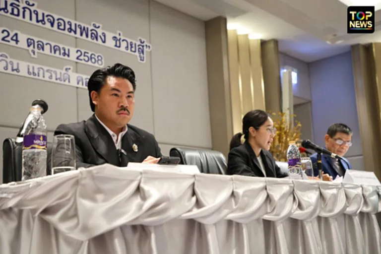 24 ต.ค.2568 ที่โรงแรมอัศวิน แกรนด์ คอนเวนชั่น นายกัณฐัศว์ พงศ์ไพบูลย์เวชย์ หรือ “กัน จอมพลัง” แถลงชี้แจงข้อสงสัยเรื่องเงินบริจาคของมูลนิธิกัน จอมพลังช่วยสู้ พร้อมประธานและฝ่ายบัญชีมูลนิธิร่วมชี้แจง
