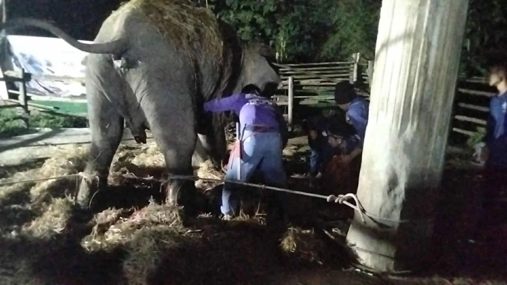 ช่วงเวลาประมาณเที่ยงคืน พังมีนาเริ่มมีอาการปวดเบ่งและกระสับกระส่าย ทีมควาญช้างจึงเตรียมความพร้อมในการช่วยเหลือการคลอดอย่างใกล้ชิด กระทั่งราวตีสี่ แม่ช้างเริ่มเบ่งคลอด และในเวลาไม่นานลูกช้างเพศผู้ก็ลืมตาดูโลกได้อย่างปลอดภัย