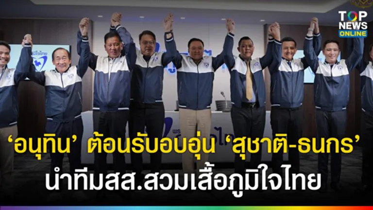 “อนุทิน” ชื่นมื่น “สุชาติ-ธนกร” นำทีมสส.สวมเสื้อภูมิใจไทย ยันมาครบ มั่นใจอุดมการณ์ เชื่อนำประเทศไปข้างหน้าได้