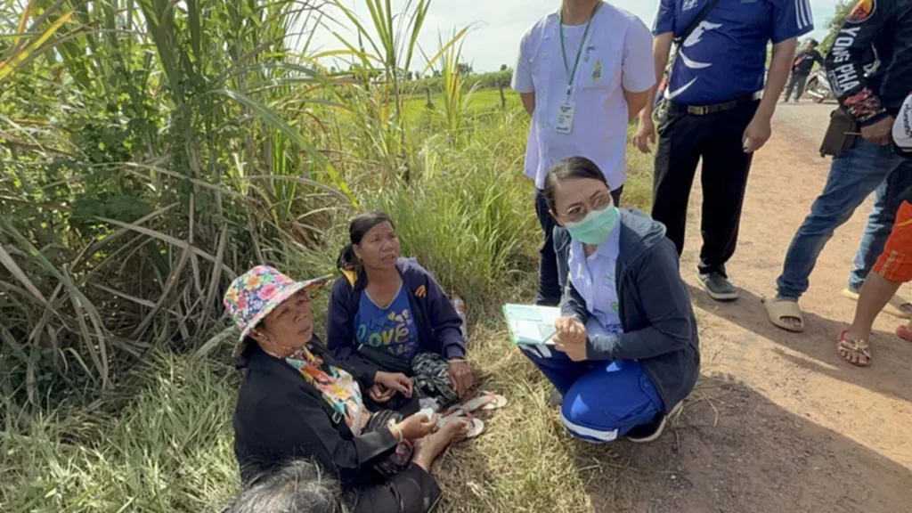 วันที่ 24 ตุลาคม 2568 เวลา 08.30 น. ร.ต.ท. สมประสงค์ สายโสม ร้อยเวร สภ.เมืองมุกดาหาร ได้รับแจ้งจากนางโอคำ อายุ 55 ปี ชาวบ้านเหมืองบ่า ตำบลคำอาฮวน อำเภอเมือง จังหวัดมุกดาหาร ว่าสามีตนเองผูกคอตายที่บริเวณไร่อ้อย โดยผูกกับกิ่งมะม่วง จึงได้รายงานให้ พ.ต.อ.ประยุทธ์ เรือนทองคำ ผกก.สภ.เมืองมุกดาหารทราบ และได้ประสานสมาคมกู้ภัยร่วมใจมุกดาหาร และ แพทย์เวรโรงพยาบาลมุกดาหาร พร้อมด้วยเจ้าหน้าที่ตำรวจลงพื้นที่ตามที่ได้รับแจ้งดังกล่าว ที่เกิดเหตุเป็นไร่อ้อย ที่ใต้ต้นมะม่วงพบศพนายวินิจ อายุ 57 ปี ลักษณะนั่งคุกเข่า ใต้โคนต้นมะม่วง สภาพร่างการถูกมดแดงกัดแทะไปบางส่วน