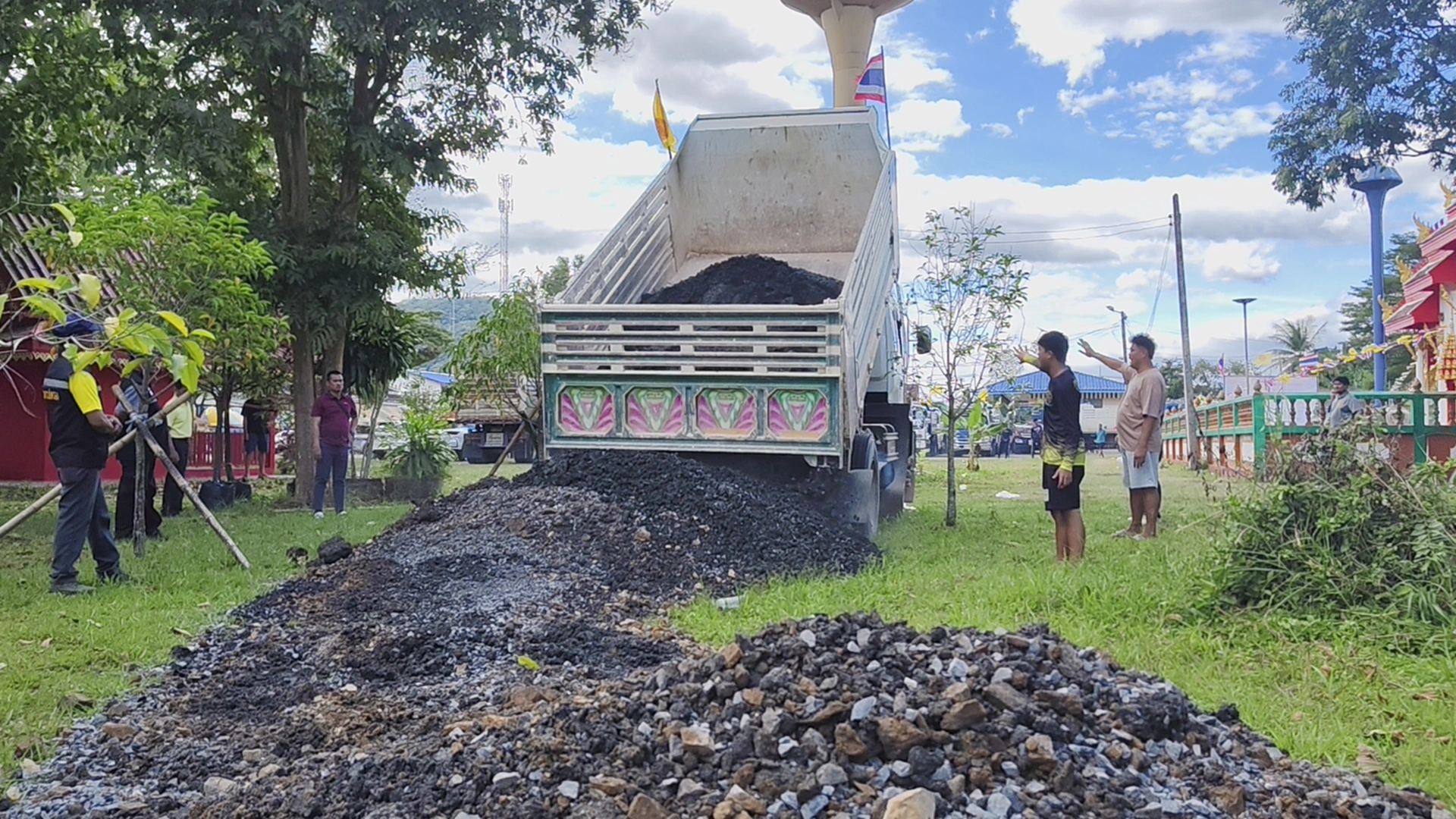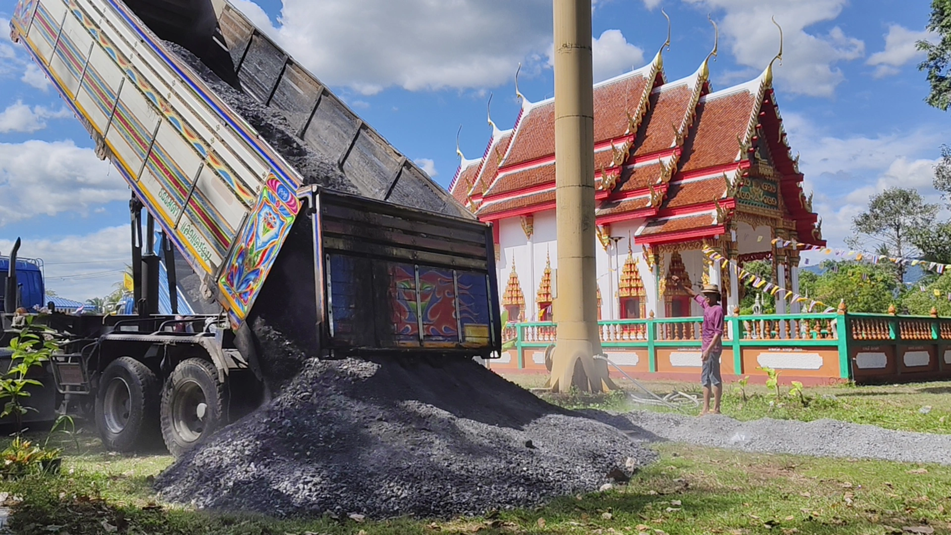 คุณภานุรัตน์ ปานโต เจ้าของกิจการบริษัท ทรัพย์ปานโต จำกัด กล่าวว่า วันนี้ได้นำรถบรรทุกหินคลุกมาจากจังหวัดสระบุรี เพื่อนำมาถวายวัดห้วยเกษียร เนื่องจากมีความศรัทธาพระอาจารย์ และในปีหน้าก็จะขอเป็นเจ้าภาพทอดกฐินที่วัดนี้เหมือนเดิม โดยหลังจากที่พิธีถวายผ้าพระกฐินเสร็จเรียบร้อยแล้ว พระอาจารย์สำเร็จ ชยวุฑโฒ เจ้าอาวาสห้วยเกษียร ได้ประพรมน้ำมนต์ให้กับบรรดารถบรรทุกหินคลุก ก่อนที่จะทำการเทหินคลุกที่เตรียมมาภายในบริเวณวัดและโรงเรียน