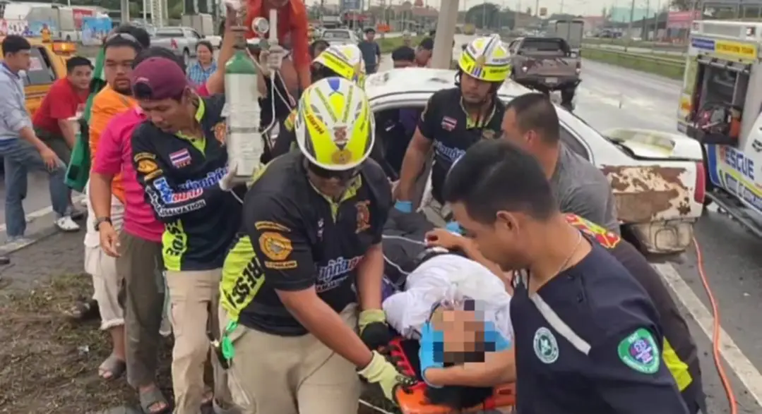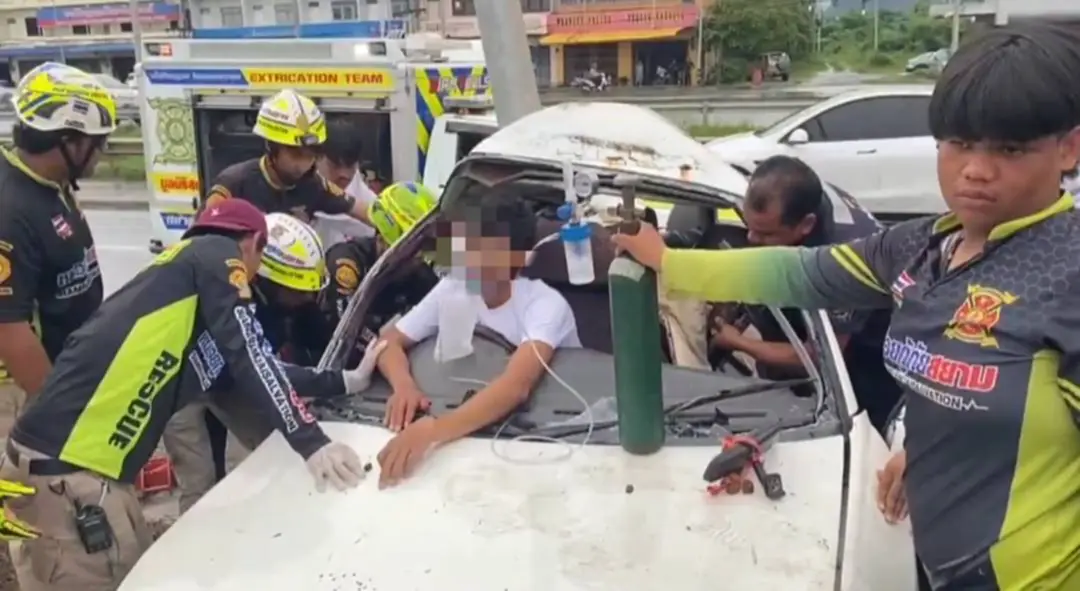 วันที่ 24 ต.ค. 2568 เจ้าหน้าที่หน่วยกู้ภัยสยามนครศรีธรรมราช รับแจ้งเหตุรถยนต์เก๋งเสียหลักชนอัดก๊อปปี้เสาไฟฟ้า มีผู้บาดเจ็บติดภายใน บริเวณถนนสายเอเชีย 41 ฝั่งขาขึ้น พื้นที่หมู่ที่ 1 ต.ชะมาย อ.ทุ่งสง จ.นครศรีธรรมราช เจ้าหน้าที่กู้ภัยพร้อมอุปกรณ์เครื่องตัดถ่างรุดตรวจสอบที่เกิดเหตุ พบรถยนต์เก๋ง มิตซูบิชิ สีขาว ทะเบียนจังหวัดนครศรีธรรมราช สภาพพังยับ ตัวถังรถห่อเสาไฟฟ้าริมถนน ภายในบริเวณเบาะคนขับพบชายคนหนึ่งติดคาซากรถ เจ้าหน้าที่ต้องใช้เครื่องตัดถ่างงัดซากนานกว่า 40 นาที จึงสามารถนำผู้บาดเจ็บออกมาได้ ก่อนรีบนำส่งโรงพยาบาลทุ่งสง
