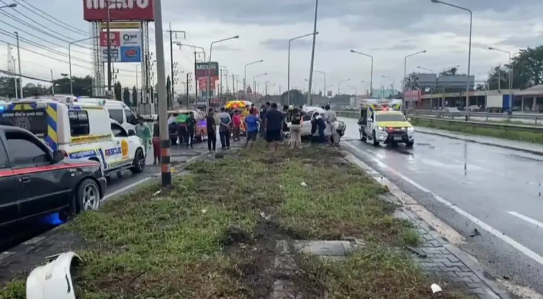 ทราบชื่อคนขับคือ นายกิตติพงษ์ อายุ 20 ปี ได้รับบาดเจ็บสาหัส จากการสอบสวนเบื้องต้นทราบว่า ขณะเกิดเหตุผู้บาดเจ็บได้ขับรถฝ่าสายฝนที่ตกลงมาอย่างหนัก และเมื่อถึงจุดเกิดเหตุ รถเกิดเสียหลักลื่นไถลชนเสาไฟฟ้าอย่างแรง