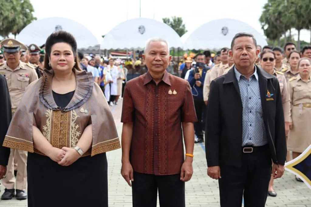 พร้อมด้วย นางสาวศุภมาส อิศรภักดี รัฐมนตรีประจำสำนักนายกรัฐมนตรี พลโท อดุลย์ บุญธรรมเจริญ รัฐมนตรีช่วยว่าการกระทรวงกลาโหม