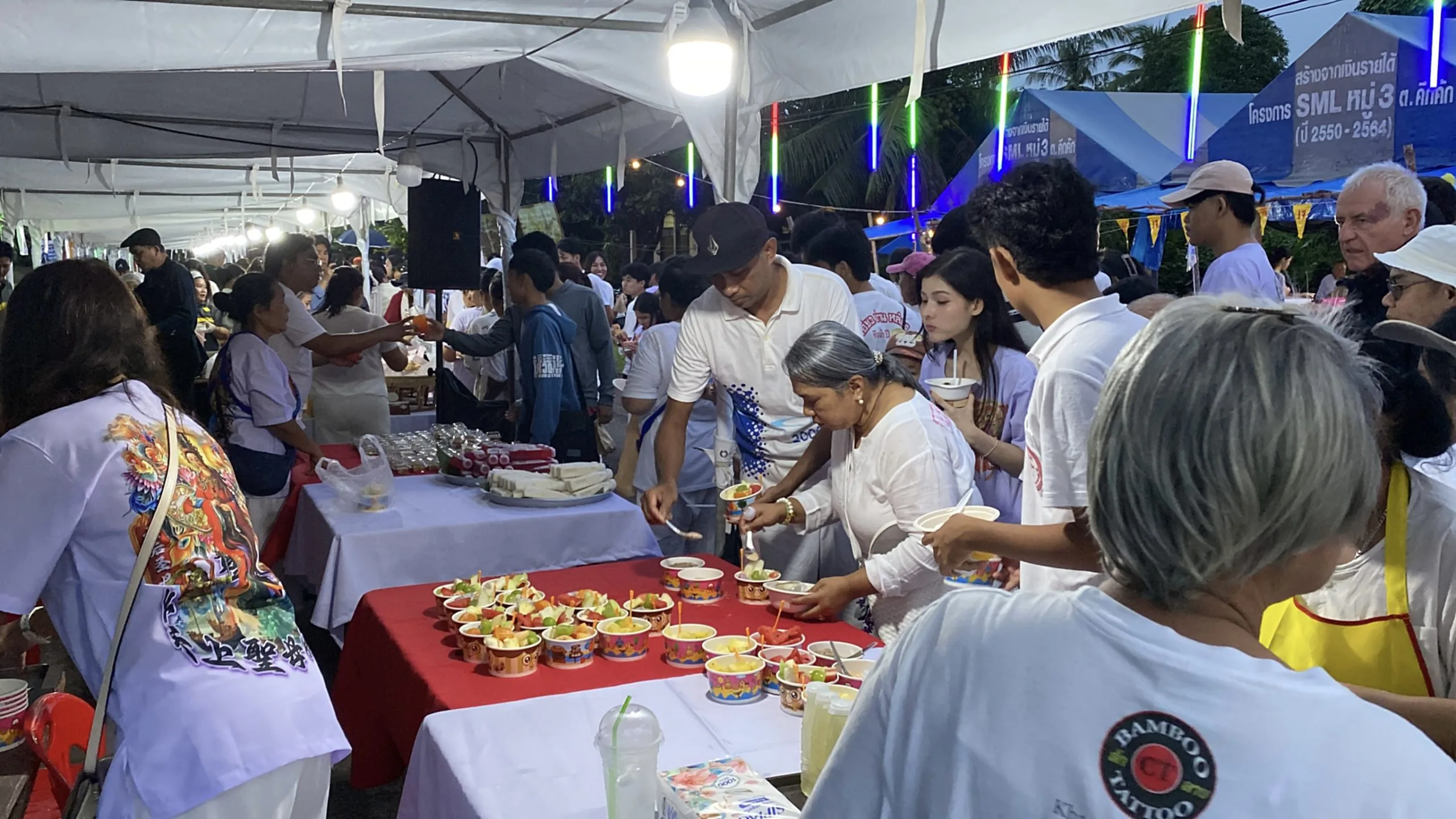 ภายในงานมีการจัดบูธอาหารและเครื่องดื่มเจกว่า 80 บูธ ให้ผู้เข้าร่วมได้ลิ้มลองอาหารเจหลากหลายเมนูโดยไม่เสียค่าใช้จ่าย โดยได้รับการสนับสนุนจากหน่วยงานภาครัฐ ภาคเอกชน โรงแรม และสถานประกอบการในพื้นที่ รายได้จากการบริจาคทั้งหมดจะนำมอบให้ศาลเจ้าในตำบลคึกคัก เพื่อใช้ในการบำรุงศาสนสถานและกิจกรรมสาธารณประโยชน์ในชุมชน