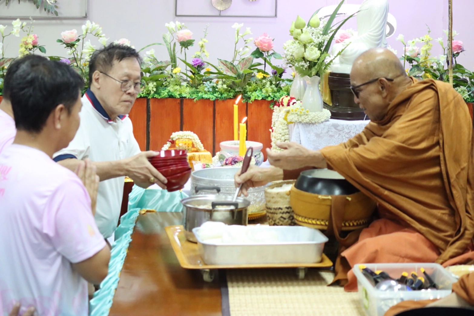 ของทางโคมอส คอร์ปอเรชั่น จำกัด ที่ทำบุญเป็นประจำทุกปี มีผู้นำท้องถิ่น ข้าราชการตำรวจ ผู้ประกอบการ นักธุรกิจ จำนวนมากที่เลื่อมใสศรัทธาหลวงพ่อสายทองเดินทางมาร่วมทำบุญกันเป็นจำนวนมาก อีกทั้ง คณะศิษยานุศิษย์ยังได้นำอาหารปรุงสุกนำมาออกร้านตั้งโรงทานเเจกจ่ายให้กับผู้ที่เดินทางมาร่วมทำบุญในครั้งนี้อีกด้วย