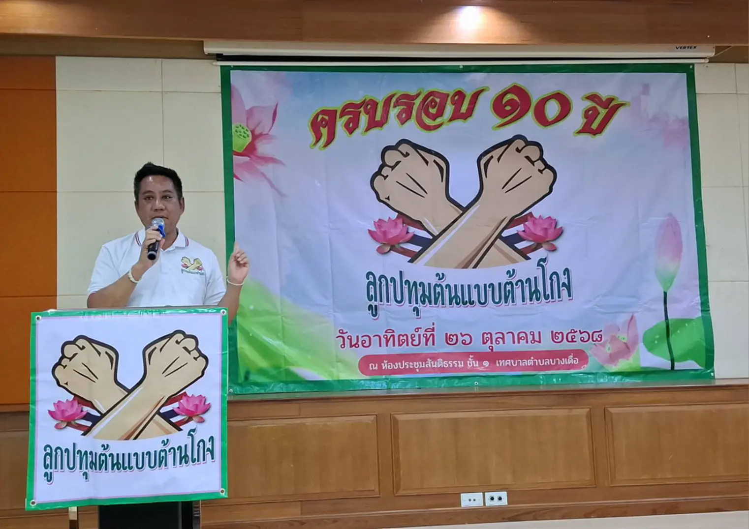 เมื่อเวลา 10.00 น. วันที่ 26 ตุลาคม 2568 ที่ ห้องประชุม อาคารสำนักงานเทศบาลตำบลบางเดื่อ อ.เมือง จ.ปทุมธานี พล.ต.ท.คำรณวิทย์ ธูปกระจ่าง นายก อบจ.ปทุมธานี พร้อมด้วย ทนายรณณรงค์ แก้วเพ็ชร์ ประธานเครือข่ายรณรงค์ทวงคืนความยุติธรรมในสังคม นายพงศธรรศ รุจิพุฒธันยพัต นายกสมาคมนักข่าวปทุมธานี นายชณัฐ รานุรักษ์ ประธานลูกปทุมต้นแบบต้านโกง และ ประธานเครือข่ายตัวแทนสมาชิกลูกปทุมต้นแบบต้านโกง ทั้ง 7 อำเภอ ร่วมเสวนางานครบรอบ 10 ปี โดยโดยมีตัวแทนจากอำเภอหนองเสืออำเภอลำลูกกาตั้งทีมขี่รถจักรยานประชาสัมพันธ์การต้านโกงมาร่วมงานครั้งนี้ด้วยลูกปทุมต้นแบบต้านโกง โดย ก่อนเริ่มงาน พล.ต.ท.คำรณวิทย์ ธูปกระจ่าง นายก อบจ.ปทุมธานี ได้กล่าวน้อมรำลึกในพระมหากรุณาธิคุณ สมเด็จพระนางเจ้าสิริกิติ์ พระบรมราชินีนาถ พระบรมราชชนนีพันปีหลวง ที่ทรงปฏิบัติพระราชกรณียกิจนานัปการ เพื่อประโยชน์สุขของประเทศ และพสกนิกรในทุกๆ ด้าน ถือเป็นแบบอย่างแห่งความเสียสละ มีความเมตตา เป็นพระมหากรุณาธิคุณ และมีความห่วงใยต่อพสกนิกรชาวไทยอย่างแท้จริง จากนั้น พล.ต.ท.คำรณวิทย์ ธูปกระจ่าง นายก อบจ.ปทุมธานี กล่าวถวายความอาลัยแด่สมเด็จพระนางเจ้าสิริกิติ์ พระบรมราชินีนาถ พระบรมราชชนนีพันปีหลวงจากนั้น ใครผู้ร่วมประชุมทั้งหมดสงบนิ่งไว้อาลัย