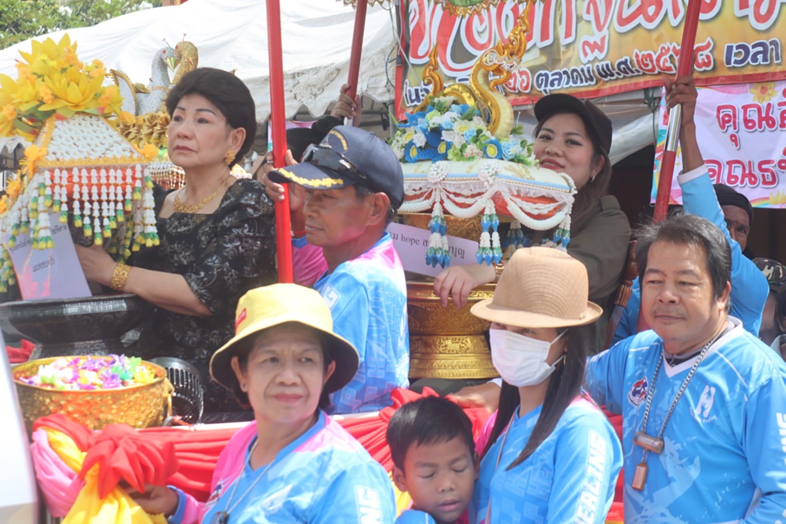คุณแม่ทองม้วน อิษวาส คุณแม่น้อย พงษ์จันทร์ และคณะเจ้าหน้าที่ชมรมโฮมสะพานบุญแห่งความหวังและศรัทธา อีกทั้งในปีนี้ยังได้รับเกียรติจาก คุณภิญโญ กิจเลิศไพโรจน์ และผู้นำท้องถิ่น เดินทางมาร่วมในพิธีตลอดจนคณะศิษยานุศิษย์ วัดพระธรรมกาย พุทธศาสนิกชนผู้ใจบุญ ชาวอำเภอเมือง และอำเภอใกล้เคียง ร่วมบุญกันอย่างเรียบง่ายและร่วมไว้อาลัยแด่พระบรมราชชนนีพันปีหลวง นอกจากนี้ พุทธศาสนิกชนผู้ใจบุญยังได้ร่วมกันนำอาหารปรุงสุกนำมาออกร้านตั้งโรงทานแจกจ่ายให้แก่ประชาชนที่ร่วมในพิธีครั้งนี้