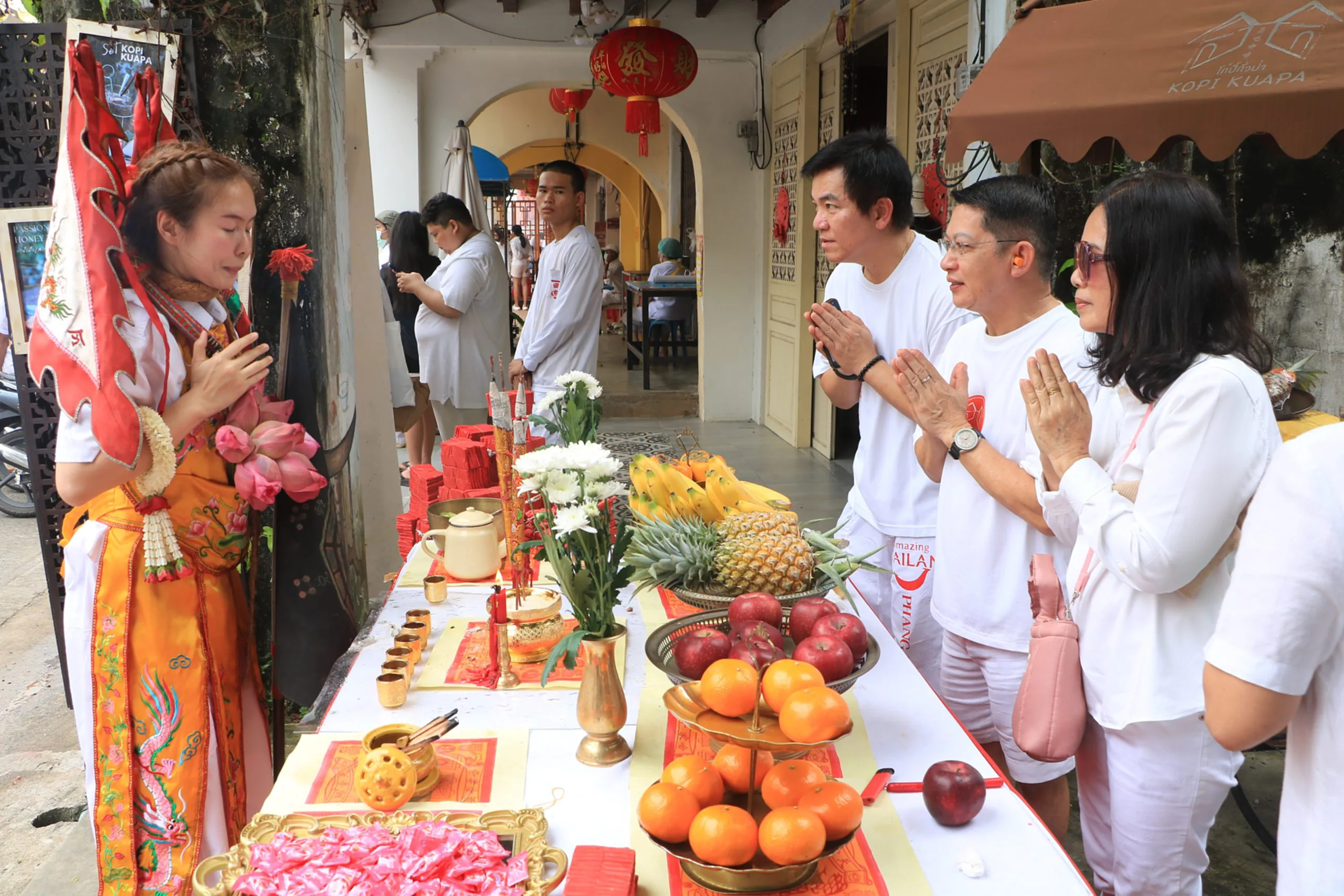 วันที่ 26 ต.ค. 2568 ที่ถนนศรีตะกั่วป่า ย่านเมืองเก่าตะกั่วป่า จังหวัดพังงา ศาลเจ้าพ่อกวนอู (ซิ่นไช่ตึ๋ง) ร่วมกับโรงพระตลาดเหนือ กู่ไช่ตึ๋ง และศาลเจ้าแม่กวนอิมตะกั่วป่า จัดพิธี “อิ้วเก้ง” หรือพิธีแห่พระรอบเมือง เนื่องในเทศกาลถือศีลกินผัก ประจำปี 2568 บรรยากาศเต็มไปด้วยความคึกคักและศรัทธา ชาวบ้านและนักท่องเที่ยวทั้งชาวไทยและต่างชาติจำนวนมาก ออกมาตั้งโต๊ะน้ำชาและผลไม้มงคลรอรับขบวนแห่องค์เทพเจ้าจีน ซึ่งประดิษฐานบนเกี้ยวหามโดยผู้ถือศีลกินผักที่ผลัดเปลี่ยนกันหามตลอดเส้นทางตามความเชื่อว่า “ผู้หามเกี้ยวจะได้รับสิริมงคล”