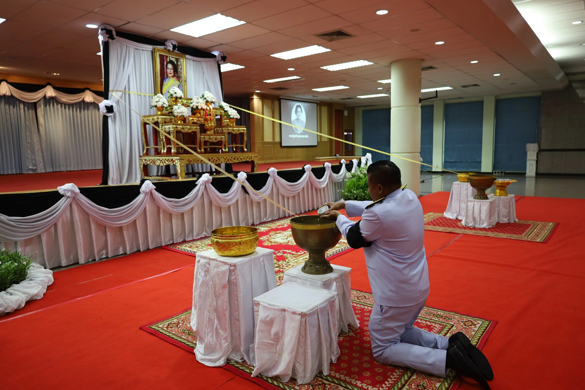 วันที่ 26 ต.ค. 2568 นายสมชาย ลีหล้าน้อย ผู้ว่าราชการจังหวัดนครศรีธรรมราช เป็นประธานในพิธีถวายน้ำสรงพระบรมศพ เบื้องหน้าพระฉายาลักษณ์ สมเด็จพระนางเจ้าสิริกิติ์ พระบรมราชินีนาถ พระราชชนนีพันปีหลวง โดยมีนายกเหล่ากาชาดจังหวัดนครศรีธรรมราช รองผู้ว่าราชการจังหวัด หัวหน้าส่วนราชการ ข้าราชการศาล ทหาร ตำรวจ และพสกนิกรทุกหมู่เหล่า พร้อมใจกันแต่งกายไว้ทุกข์ เข้าร่วมพิธีด้วยความอาลัยอย่างสุดซึ้ง ณ โรงละครองค์การบริหารส่วนจังหวัดนครศรีธรรมราช ภายในพิธี ผู้ว่าราชการจังหวัดฯ และผู้ร่วมงานได้ร่วมถวายน้ำสรงพระบรมศพเบื้องหน้าพระฉายาลักษณ์ และลงนามถวายอาลัย เพื่อน้อมรำลึกในพระมหากรุณาธิคุณอันหาที่สุดมิได้ จังหวัดนครศรีธรรมราชได้จัดให้ประชาชนทุกหมู่เหล่าเข้าร่วมถวายน้ำสรงพระบรมศพเบื้องหน้าพระฉายาลักษณ์ได้ตั้งแต่เวลา 08.00 น. ถึง 16.00 น. ของวันนี้ และเปิดให้ลงนามถวายความอาลัยได้ทุกวัน