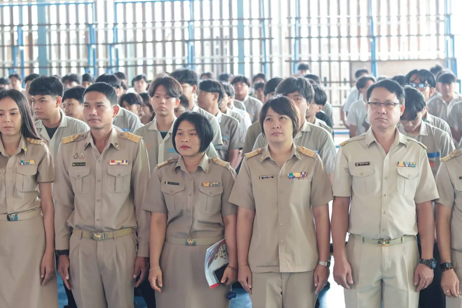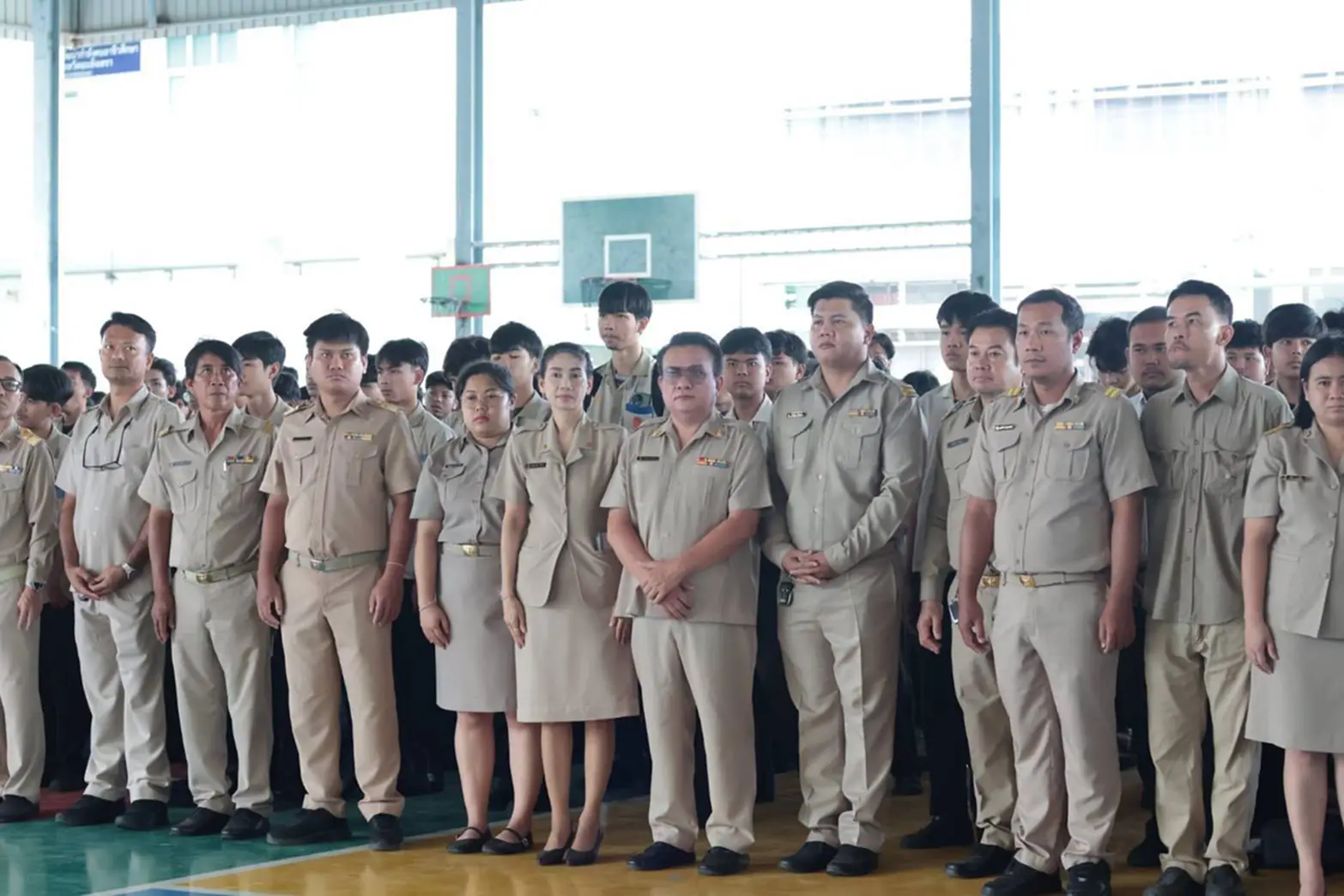 ภายในพิธีมีคณะผู้บริหาร ครู บุคลากรทางการศึกษา และนักเรียนนักศึกษาวิทยาลัยเทคนิคฉะเชิงเทรา เข้าร่วมแสดงความอาลัยโดยพร้อมเพรียงกัน