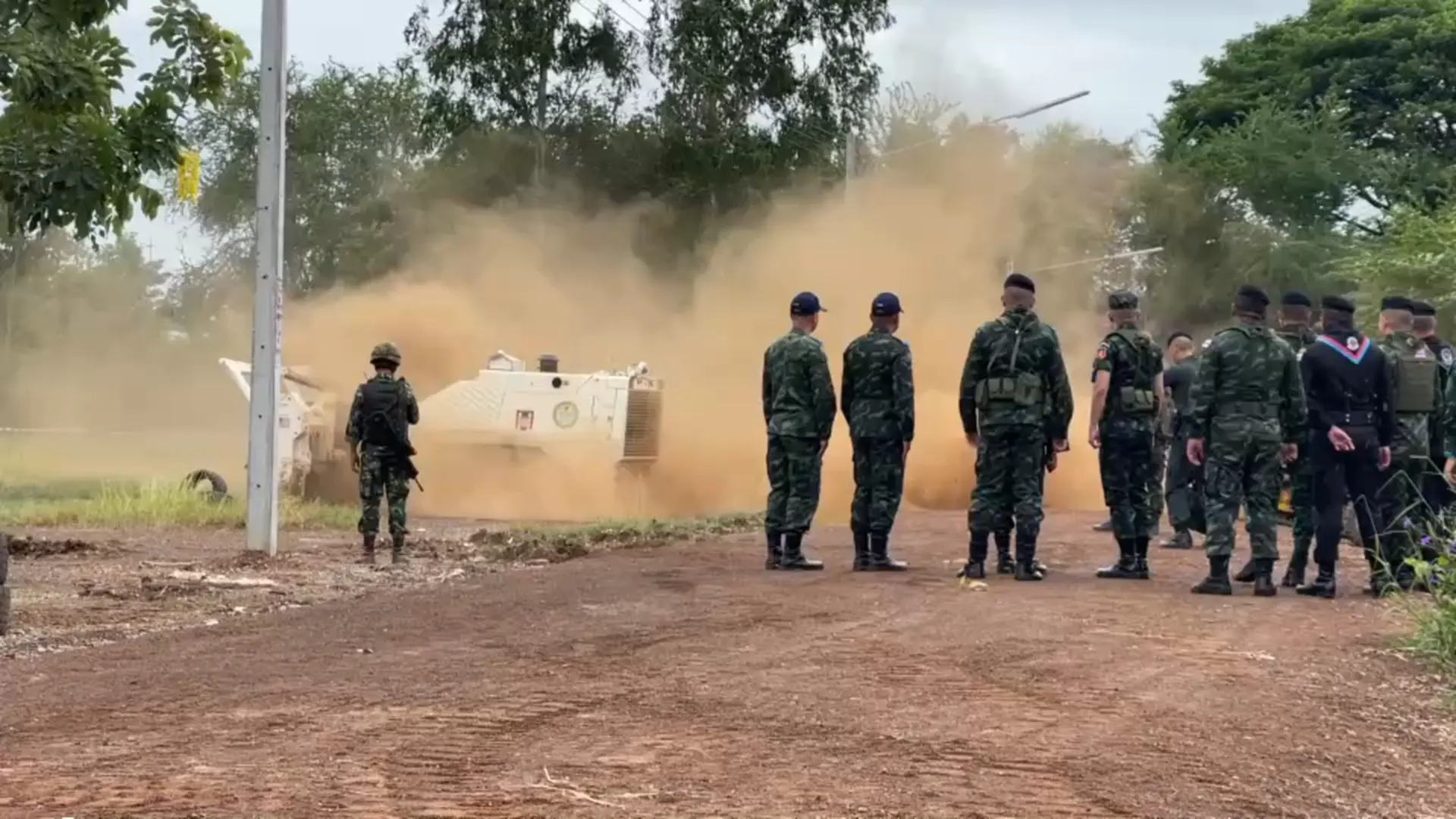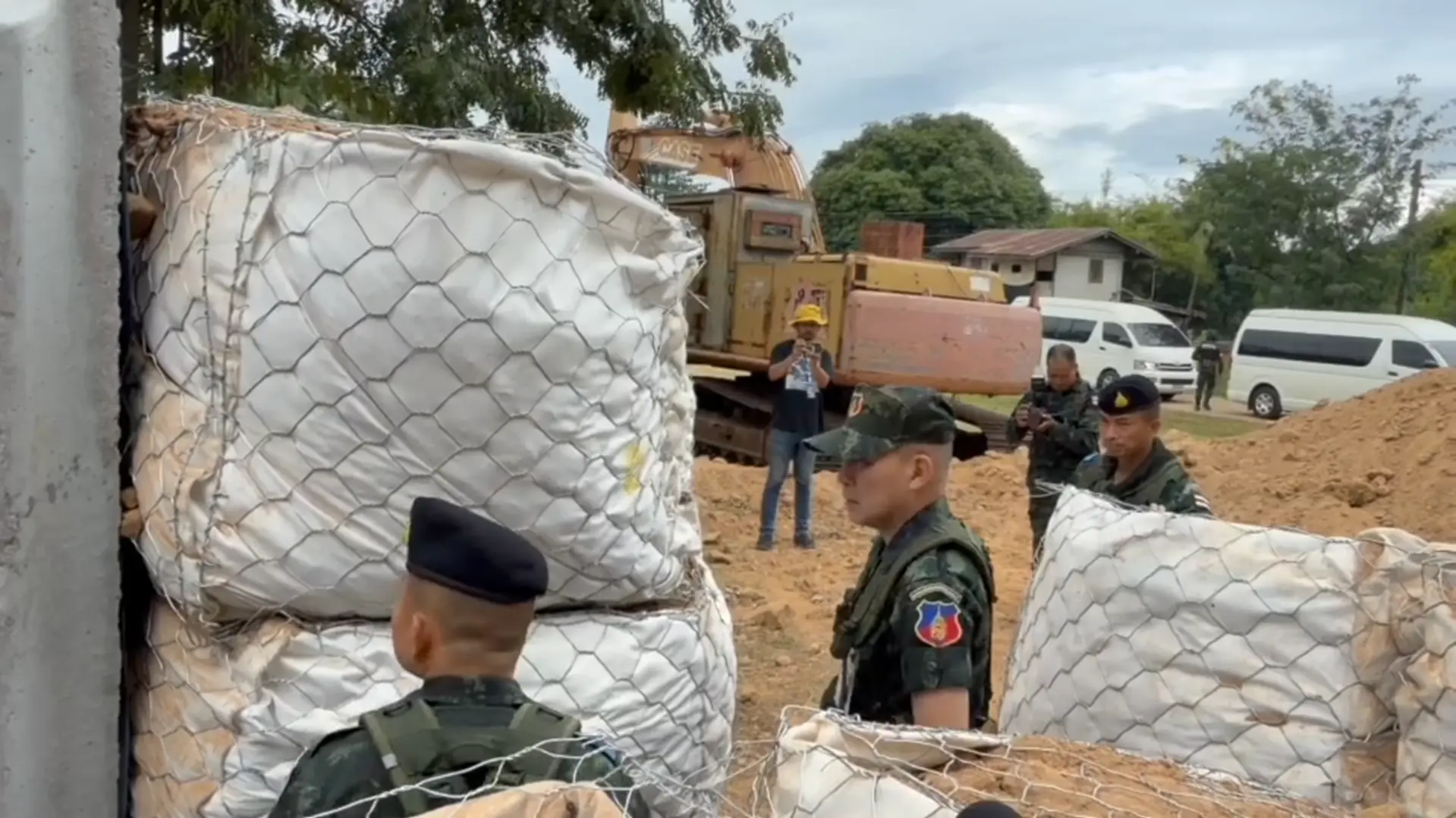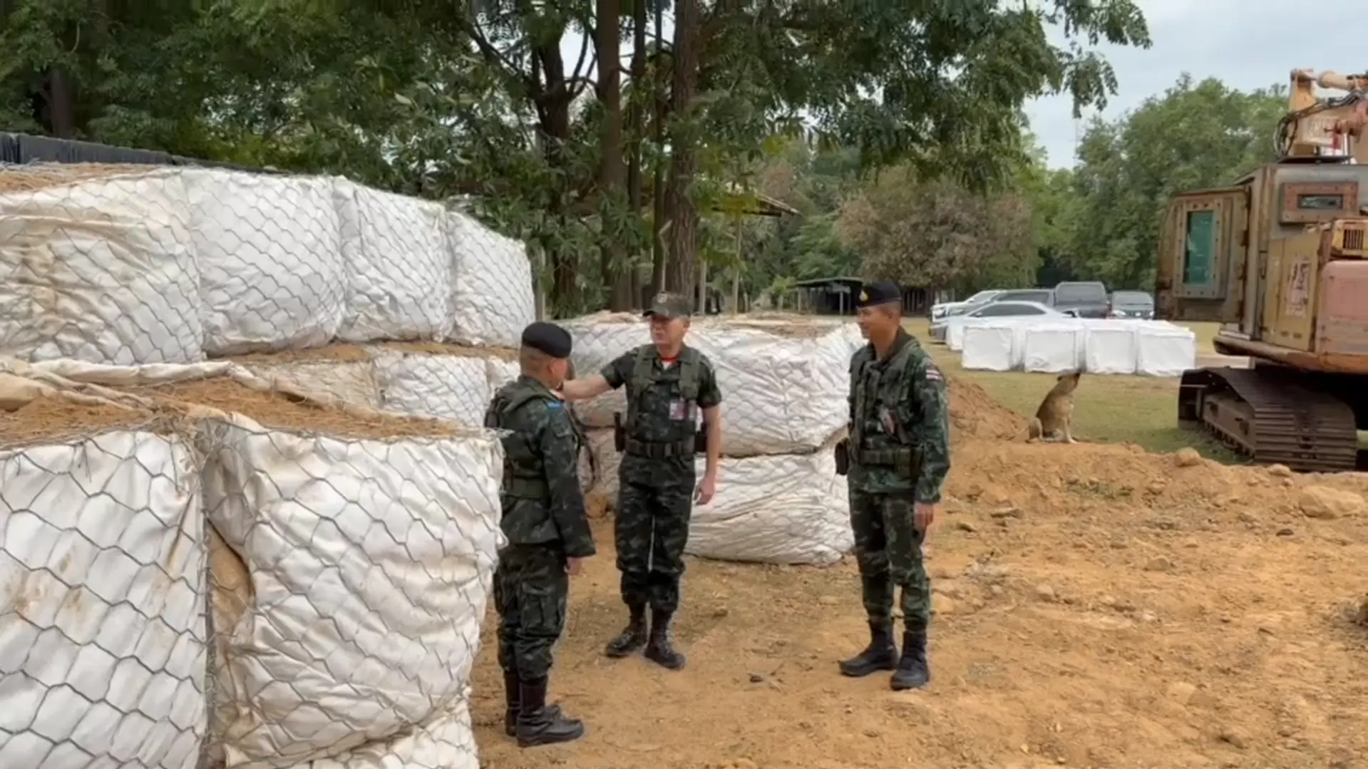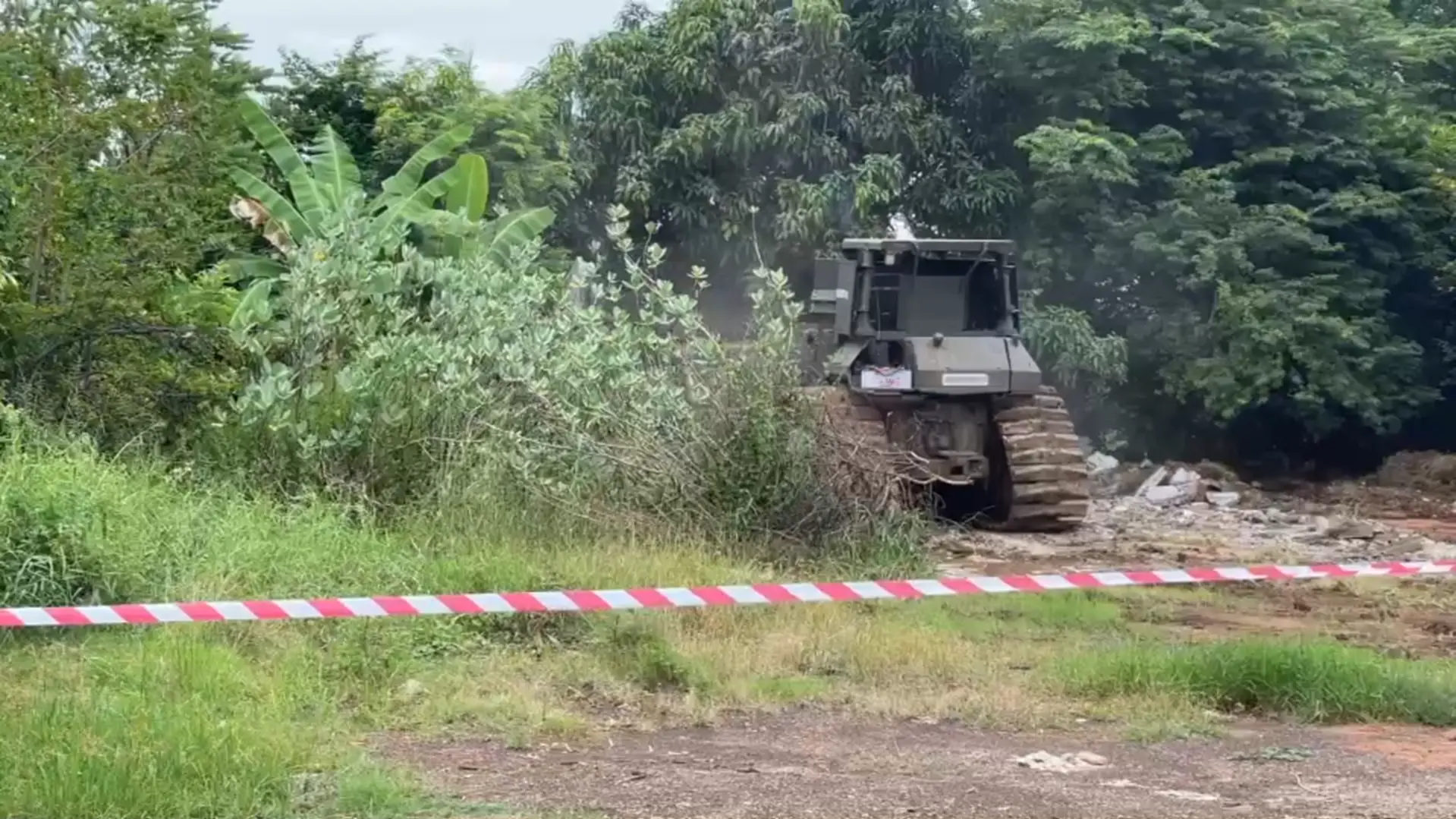 ภาพขณะที่รถเครื่องจักรหนักขนาดใหญ่ ของกองกำลังบูรพา กองทัพภาคที่ 1 เข้าทำลายรื้อบ้านของคนเขมรที่รุกล้ำแผ่นดินไทยพื้นที่บ้านหนองจาน อ.โคกสูง จ.สระแก้ว เมื่อช่วงเช้าที่ผ่านมา (27 ต.ค.68) เบื้องต้นยังไม่มีรายงานว่าบ้านหลังดังกล่าวเป็นบ้านของกำนันลี หรือไม่ แต่อยู่ในพื้นที่ที่รุกแผ่นดินไทยเข้ามา โดยหลังจากเข้าเคลียร์พื้นที่รื้อบ้านแล้วเจ้าหน้าที่จะเข้าเก็บคู่วัตถุระเบิดต่อไป