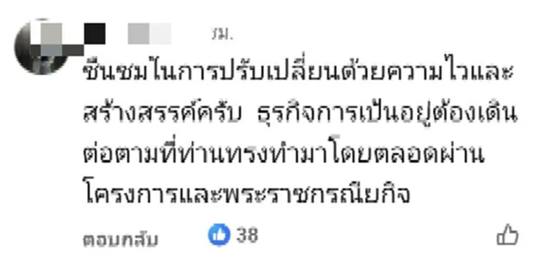 -ชื่นชมในการปรับเปลี่ยนด้วยความไวและสร้างสรรค์ครับ ธุรกิจการเป็นอยู่ต้องเดินต่อตามที่ท่านทรงทำมาโดยตลอด ผ่านโครงการและพระราชกรณียกิจ