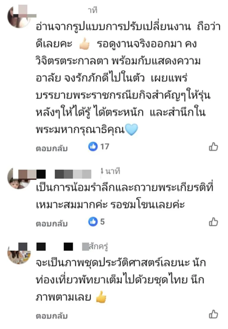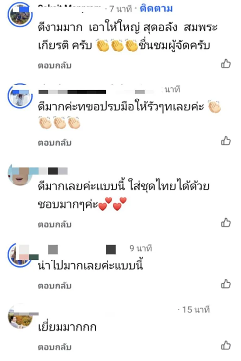 ทั้งนี้ การปรับเปลี่ยนรูปแบบการจัดงานดังกล่าวได้มีผู้ใช้เฟซบุ๊กเข้ามาแสดงความชื่นชมจำนวนมาก อาทิ