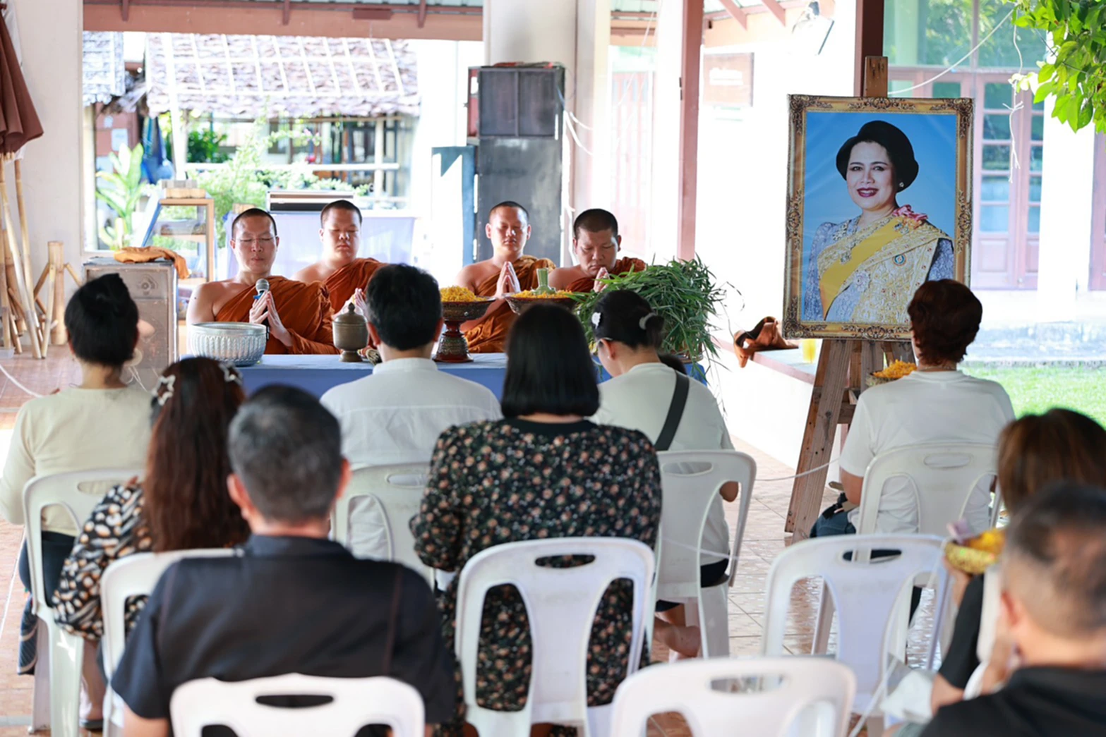 พิธีดำเนินไปด้วยความสงบเรียบง่ายแต่เปี่ยมด้วยศรัทธา เมื่อถึงเวลา 16.38 น. พระครูอ๊อดได้ประกอบพิธีเจริญพระพุทธมนต์ และกล่าวคำอธิษฐานปล่อยชีวิตสัตว์ให้เป็นอิสระ โดยมีคณะศรัทธาร่วมสวดมนต์และถวายจตุปัจจัย ถวายเป็นพระราชกุศลแด่สมเด็จพระนางเจ้าสิริกิติ์ พระบรมราชินีนาถ พระบรมราชชนนีพันปีหลวง “แม่ของแผ่นดิน” ธ สถิตในดวงใจตราบนิจนิรันดร์