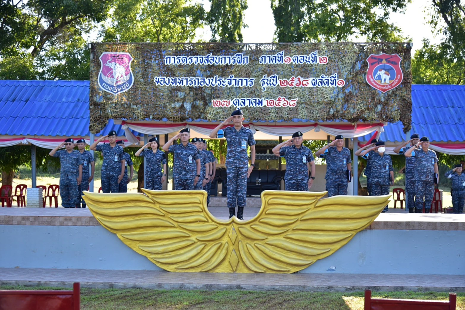วันจันทร์ที่ 27 ตุลาคม 2568 นาวาอากาศเอก ชัยวัฒน์ เสมียนรัมย์ เสนาธิการกองบิน 41 ให้การต้อนรับ นาวาอากาศเอก พัฒนสันต์ โพธิแพทย์ ผู้อำนวยการกองวิทยาการ ศูนย์การทหารอากาศโยธิน หน่วยบัญชาการอากาศโยธิน ในฐานะประธานคณะกรรมการฯ และคณะฯ ที่ได้เดินทางมาตรวจสอบการฝึก ภาคที่ 1 ตอนที่ 2 ของทหารกองประจำการ รุ่นปี 2568 ผลัดที่ 1 ณ สนามฝึกกองพันทหารอากาศโยธิน กองบิน 41
