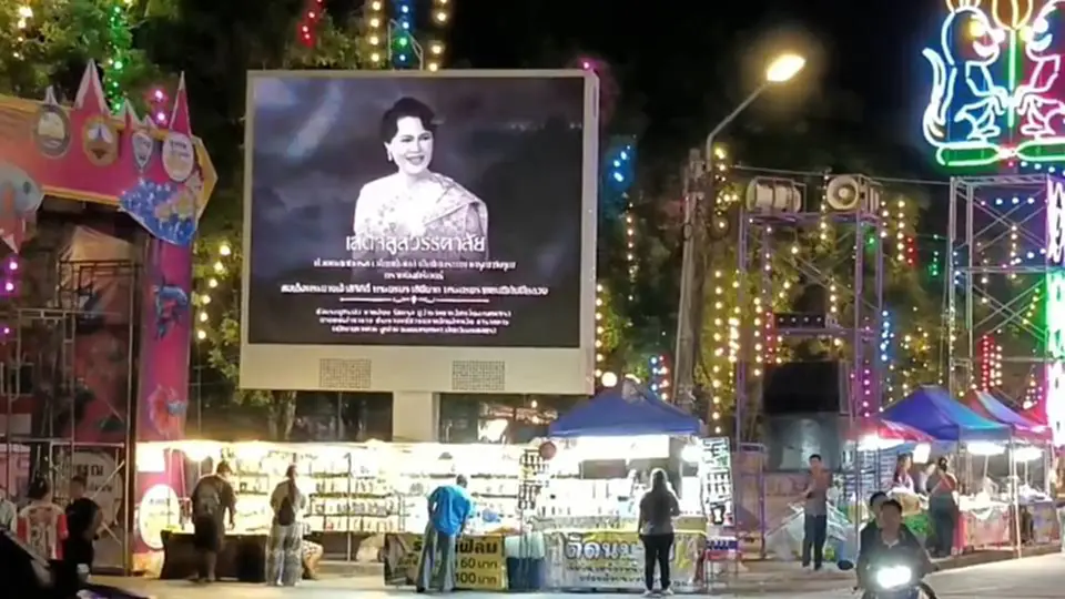 บริเวณหน้างานบนจอ LED ของจังหวัด ได้มีการฉายพระฉายาลักษณ์ สมเด็จพระนางเจ้าสิริกิติ์ พระบรมราชินีนาถ พระบรมราชชนนีพันปีหลวง พร้อมขึ้นข้อความแสดงความอาลัยแด่พระองค์ท่าน ขณะที่ประชาชนที่มาจับจ่ายเลือกซื้อสินค้า ต่างร่วมใจกันสวมเสื้อผ้าชุดขาวดำ เพื่อร่วมไว้อาลัยอย่างพร้อมเพรียง
