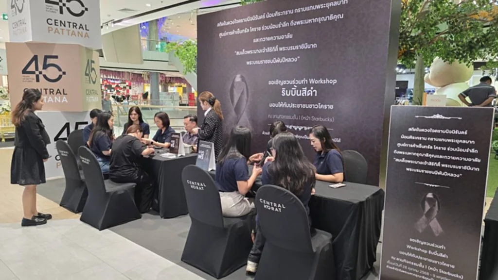 วันที่ 28 ตุลาคม 2568 ศูนย์การค้าเซ็นทรัล โคราช จัดกิจกรรมน้อมรำลึกในพระมหากรุณาธิคุณอันหาที่สุดมิได้ ของ สมเด็จพระนางเจ้าสิริกิติ์ พระบรมราชินีนาถ พระบรมราชชนนีพันปีหลวง เชิญชวนพี่น้องประชาชนชาวโคราชร่วมทำ Workshop ประดิษฐ์ริบบิ้นไว้อาลัย เพื่อแจกจ่ายให้ประชาชนไว้ติดเสื้อเป็นสัญลักษณ์แห่งการถวายความอาลัย และรำลึกถึงพระเมตตาคุณอันยิ่งใหญ่