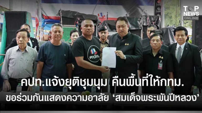 คปท.แจ้งยุติชุมนุม ข้างสะพานชมัยมรุเชฐ คืนพื้นที่ให้กทม. ขอร่วมกันแสดงความอาลัย “สมเด็จพระพันปีหลวง”